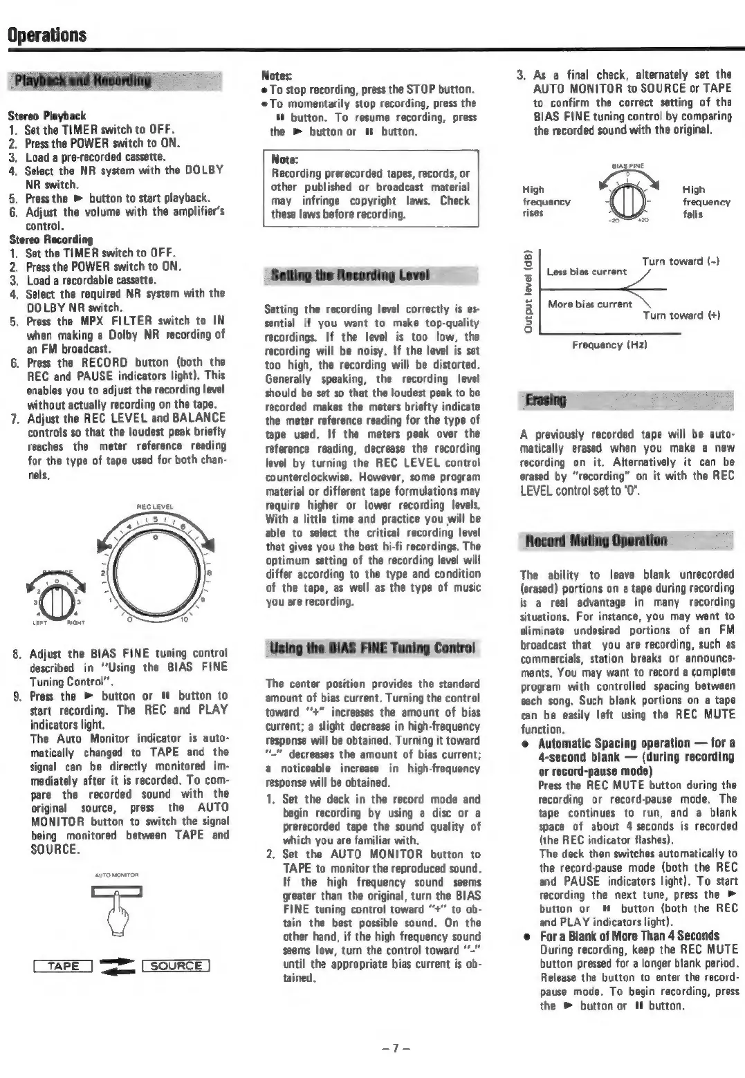 Teac V-1030 - Operations; Playback and Recording; Setting Recording Levels