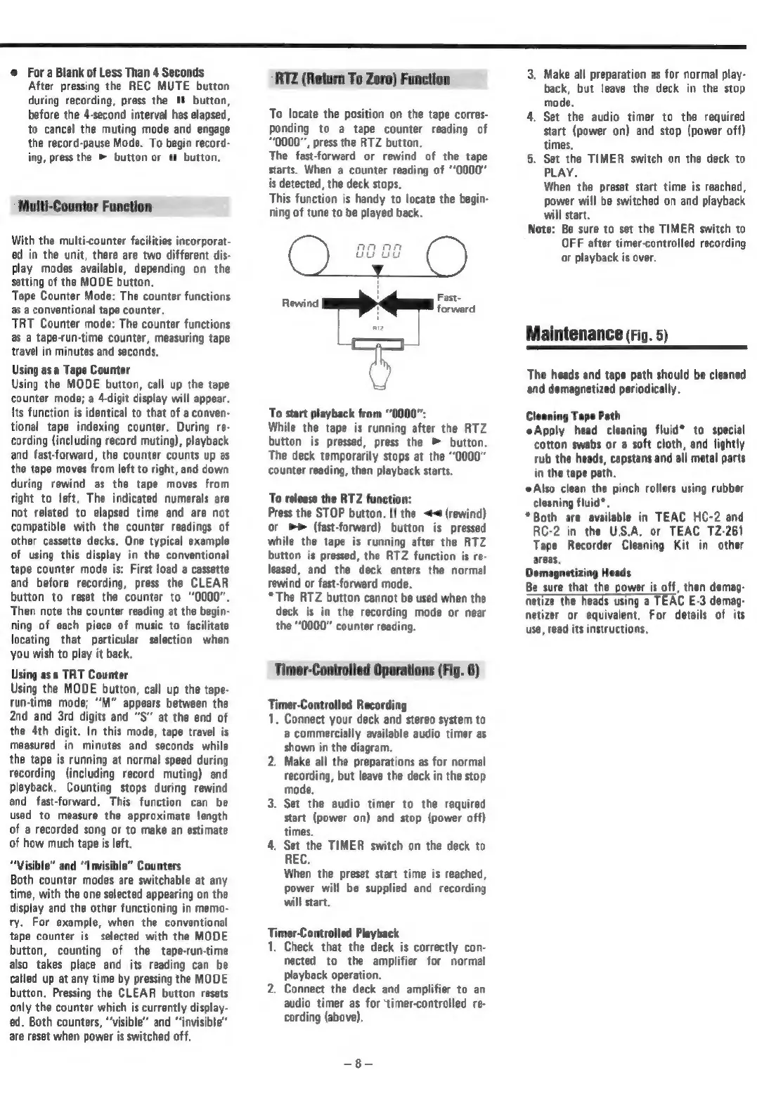 Teac V-1030 - Tape Counter and Timer Functions; Maintenance and Troubleshooting; Maintenance Procedures