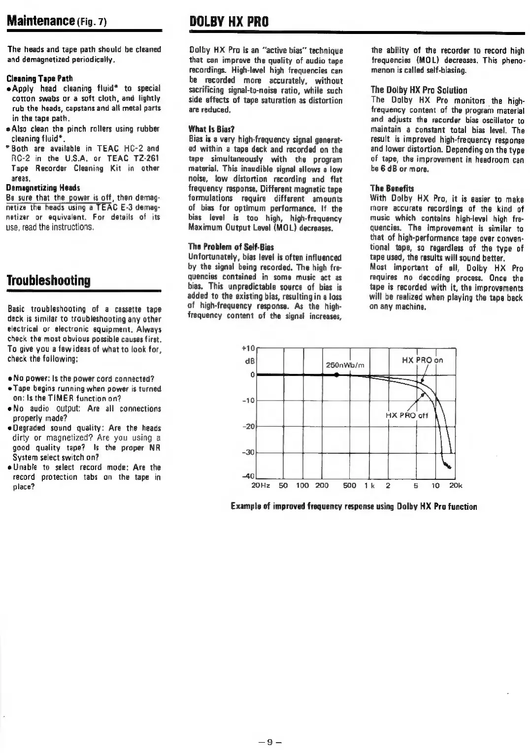 Teac V-2030S - Dolby Hx Pro; Troubleshooting