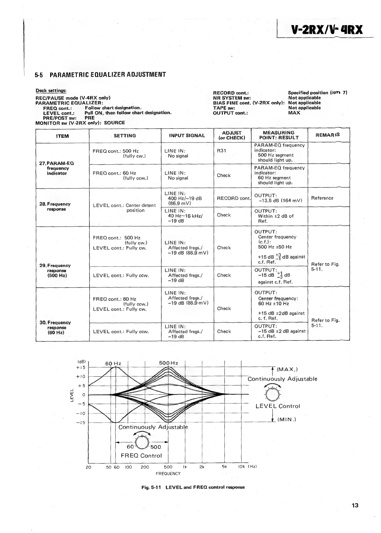 Teac V-2RX - Parametric Equalizer Adjustment; Parametric EQ Indicator and Response Checks; Parametric EQ Band Specific Response