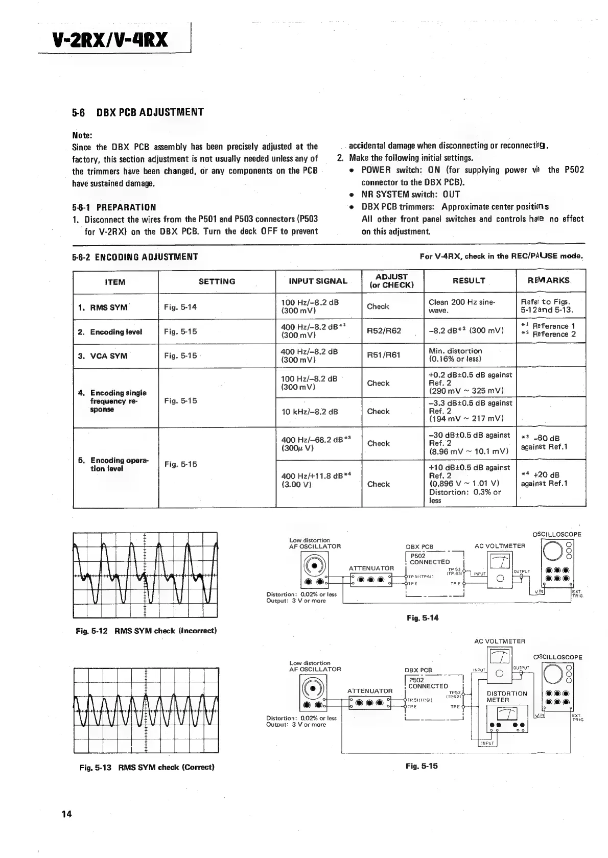 Teac V-2RX - DBX PCB Adjustment; DBX PCB Adjustment Preparation; DBX Encoding Adjustment Procedures
