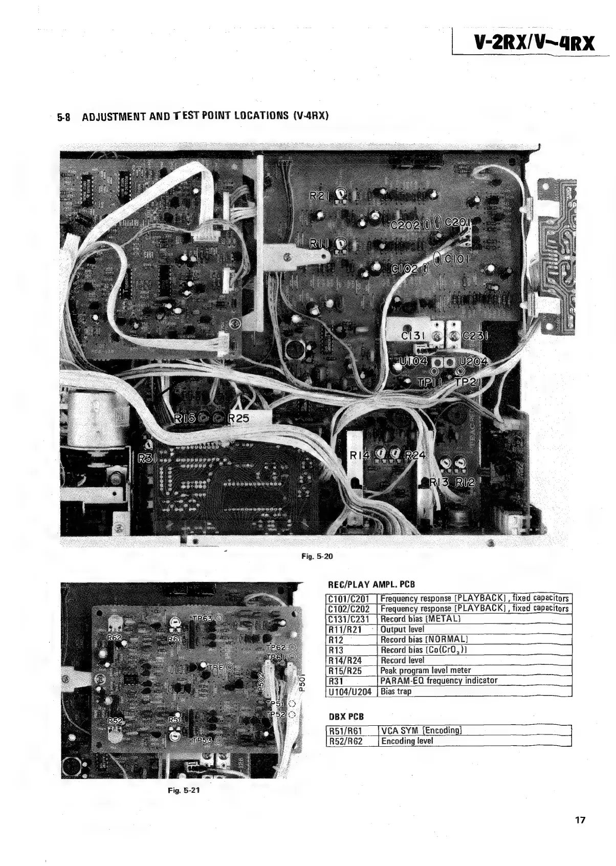 Teac V-2RX - Adjustment and Test Point Locations (V-4 RX); REC;PLAY Amplifier PCB Adjustments (V-4 RX); DBX PCB Adjustment Points (V-4 RX)