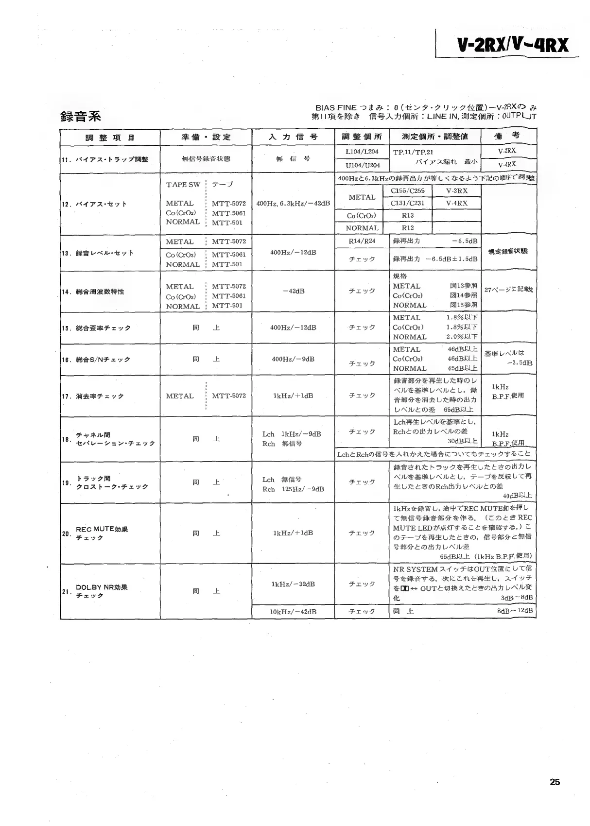 Teac V-2RX - Recording System; Recording Bias and Level Setup; Recording Performance Metrics; Crosstalk and Noise Reduction Checks