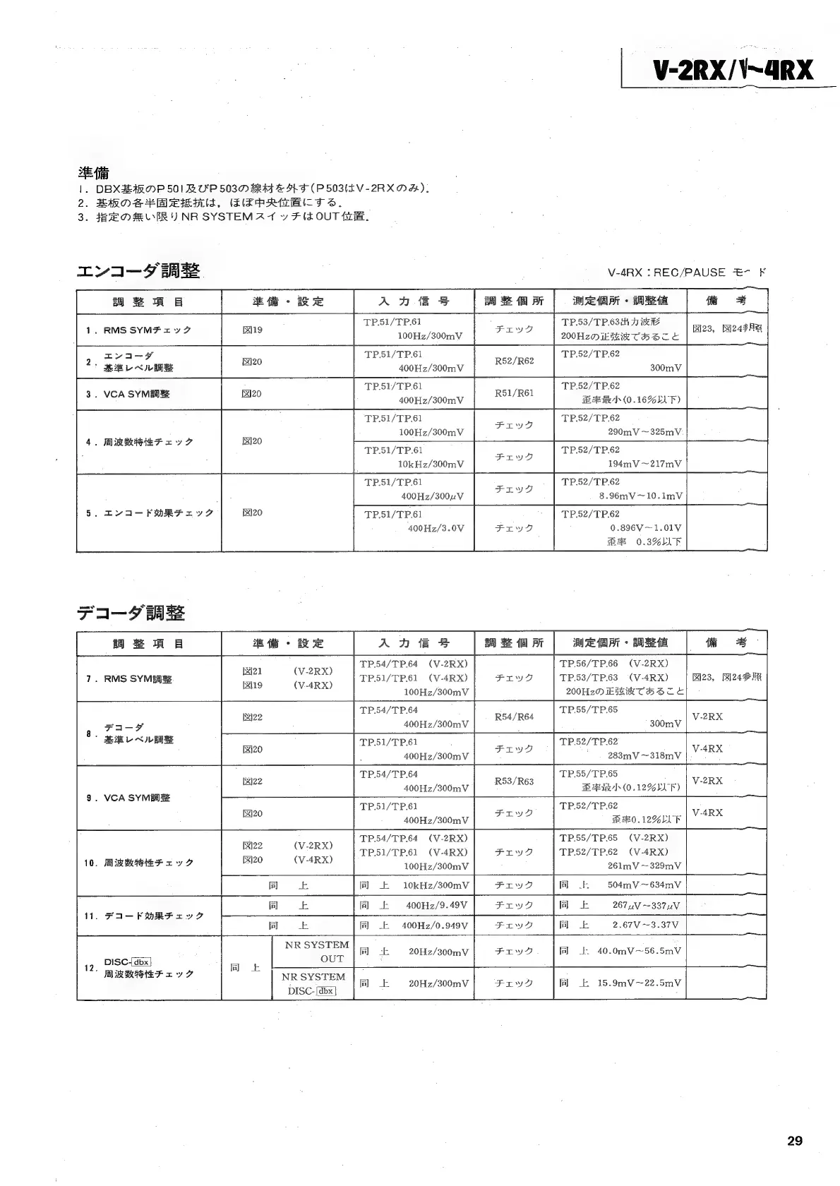 Teac V-2RX - Encoder Adjustment; DBX Encoder Symmetry and Level; DBX Encoder Response and Effects; Decoder Adjustment