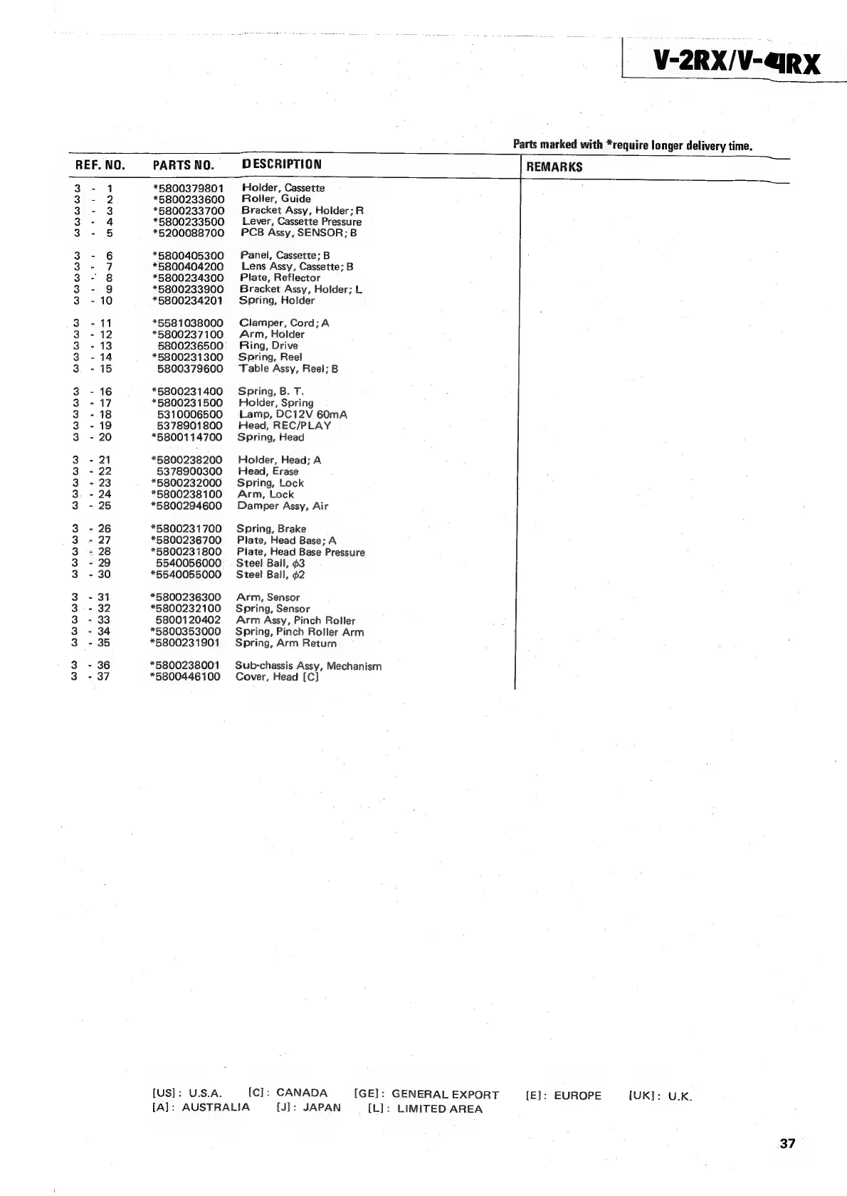 Teac V-2RX - Exploded View 3 - V-4 RX Parts List