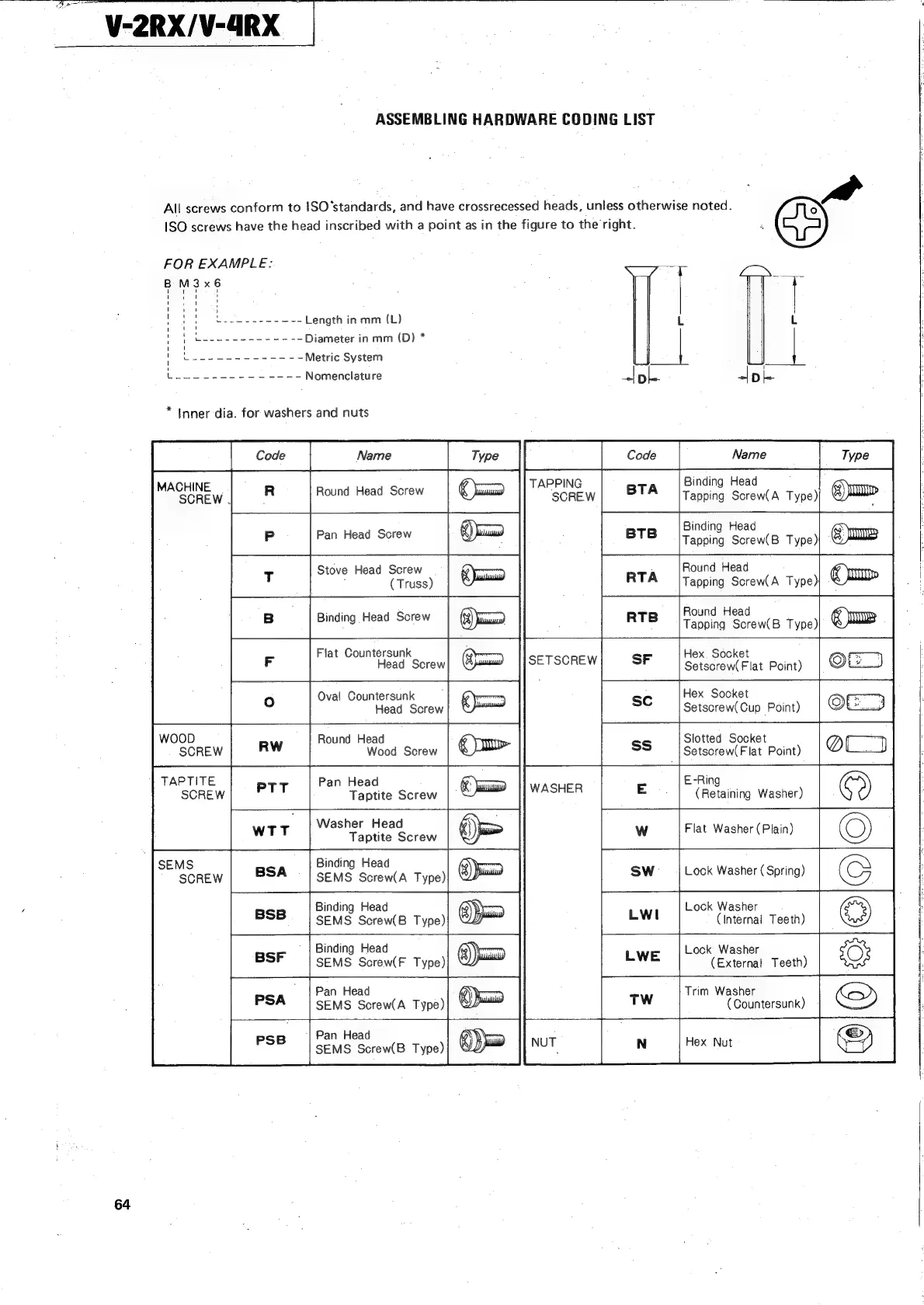 Teac V-2RX - Assembling Hardware Coding List