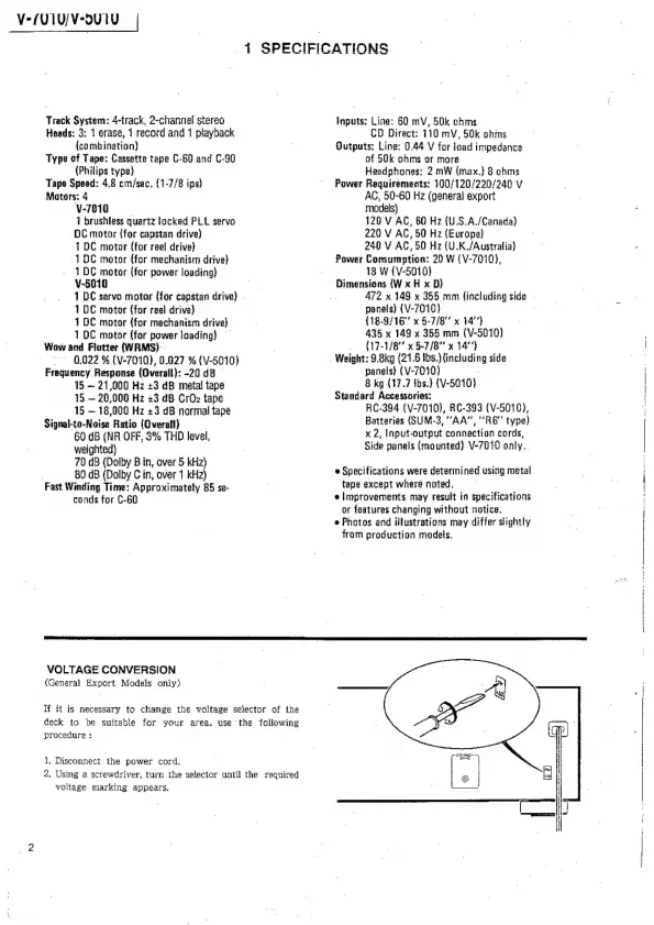 Teac V-5010 - Technical Specifications; Voltage Conversion Procedure