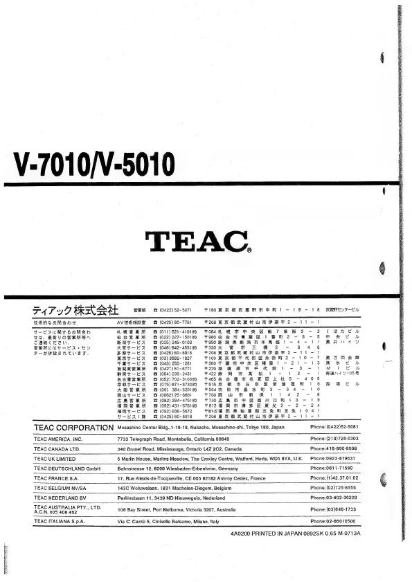 Other manuals for Teac V-7010