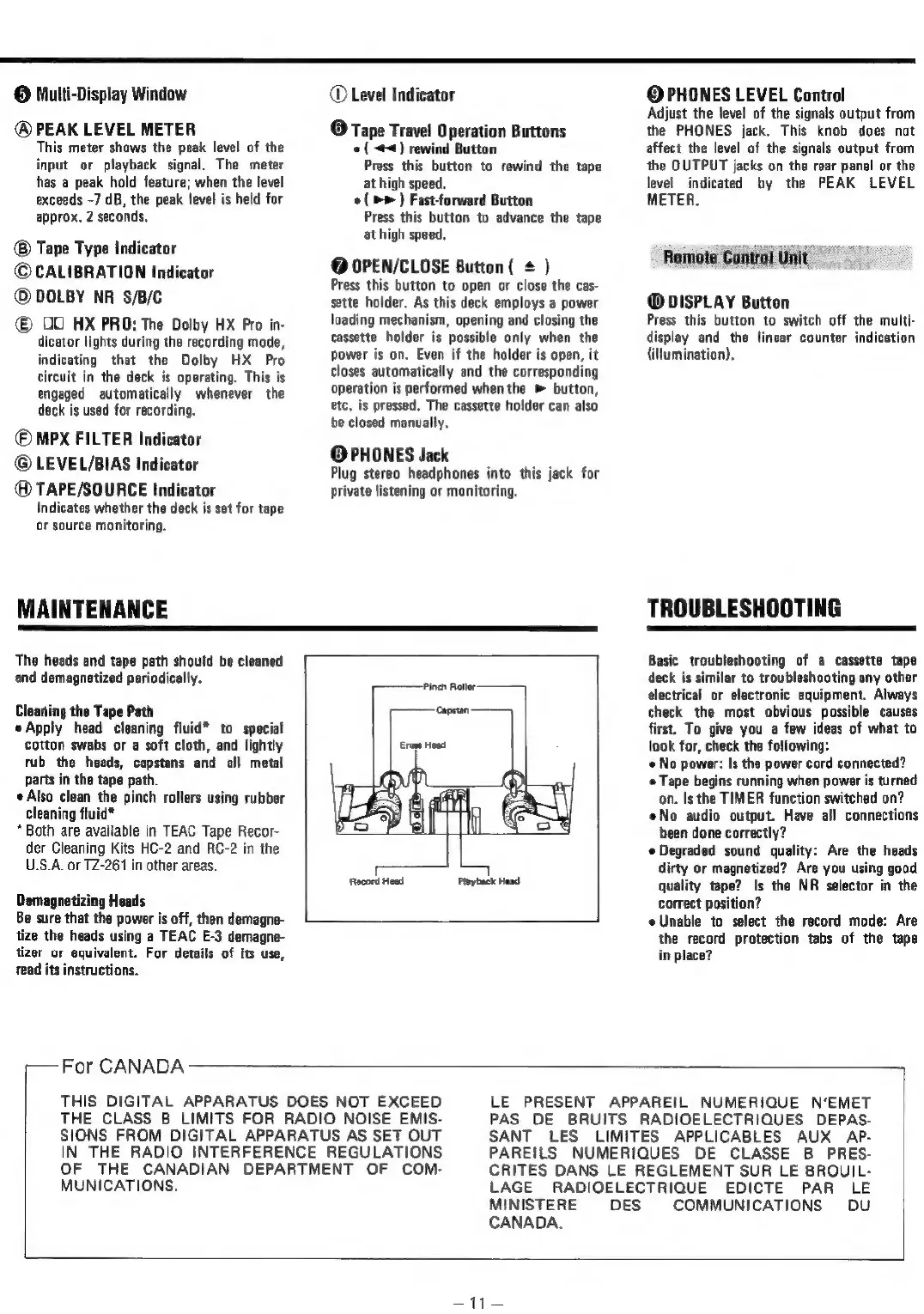 Teac V-8000S - Advanced Features, Maintenance, and Troubleshooting; Indicators, Jacks, and Tape Controls; Maintenance and Troubleshooting Guide