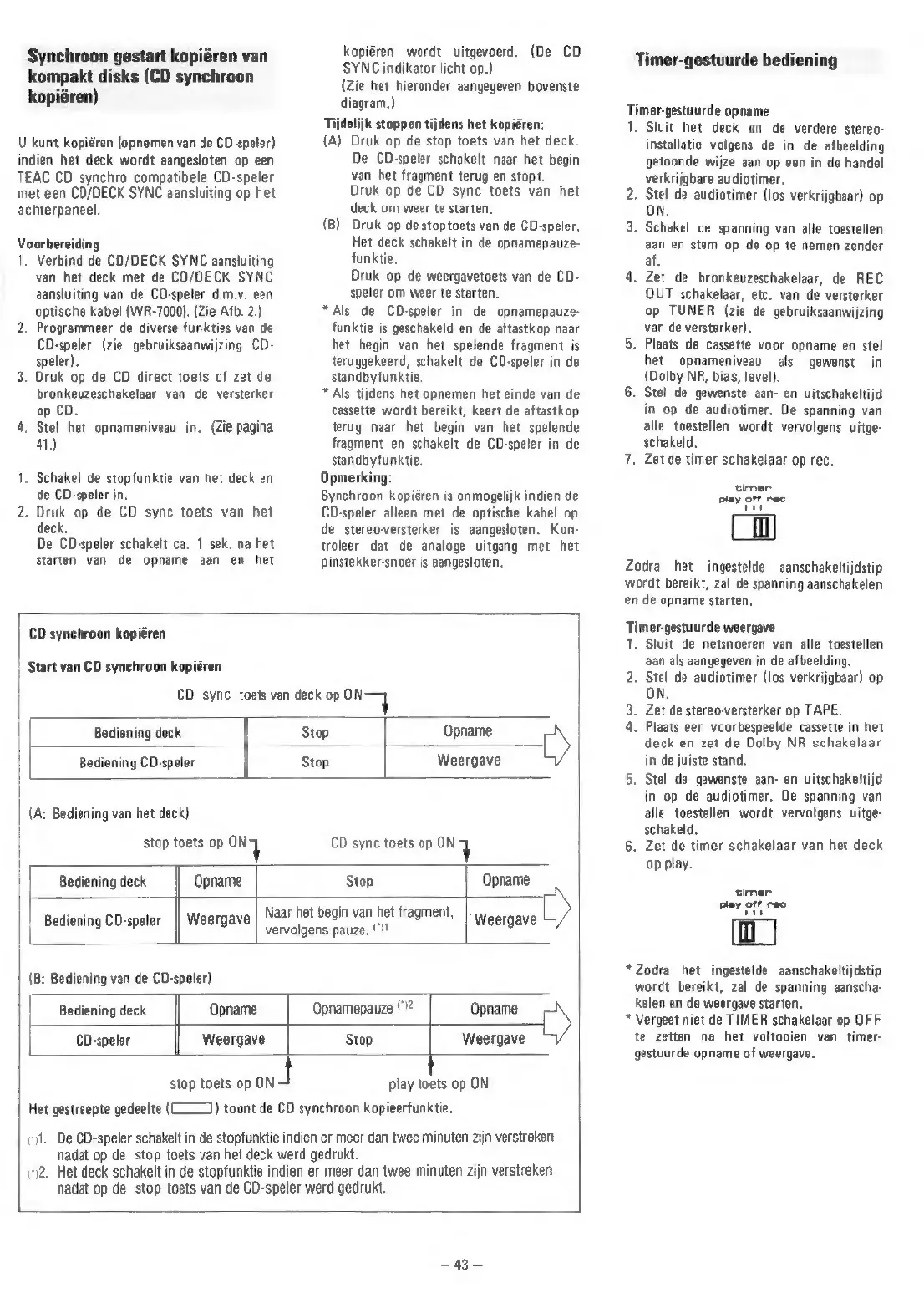 Teac V-8030S - Timer-Gestuurde Bediening