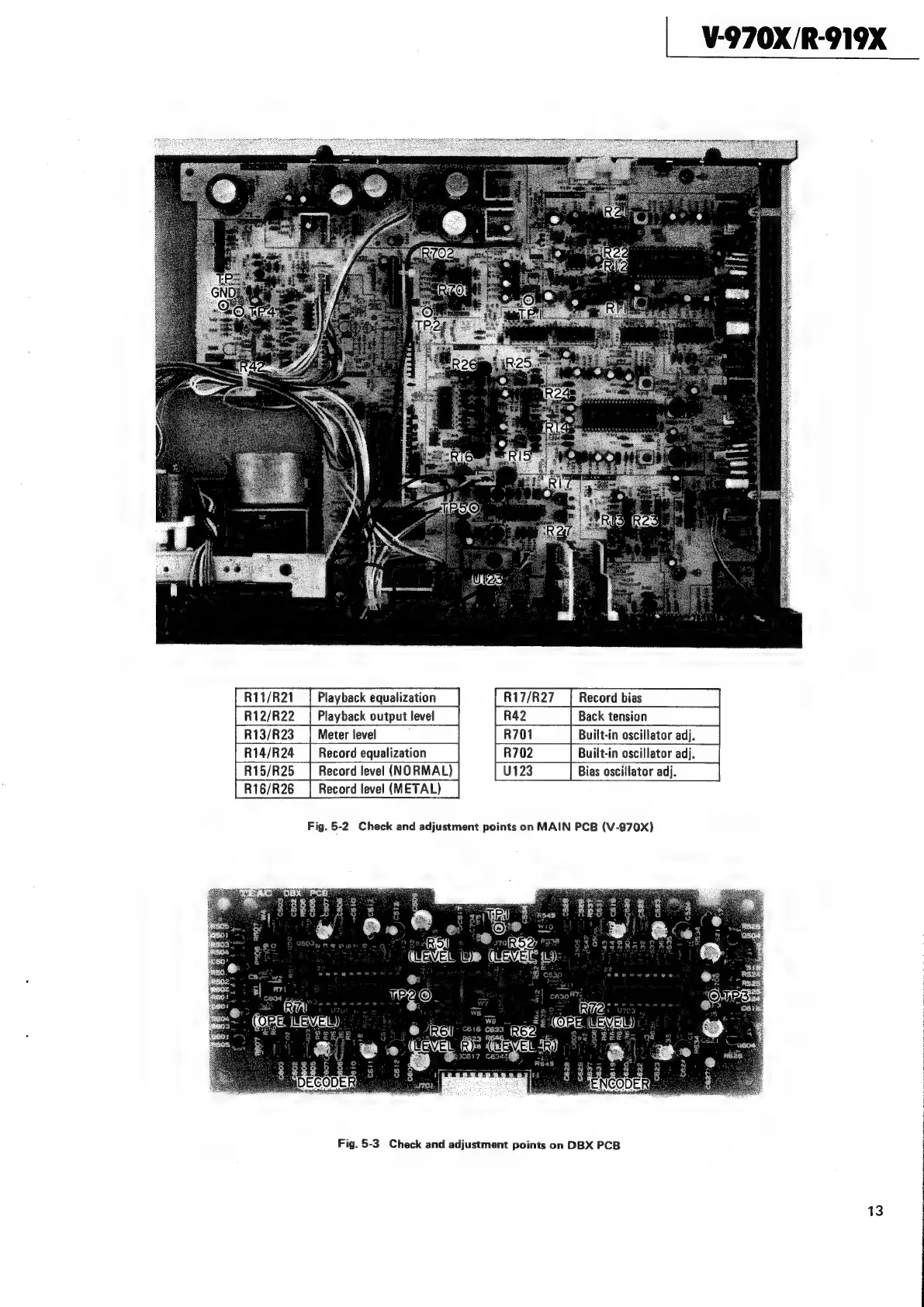 Teac V-970X - PCB Check and Adjustment Points; Main PCB (V-970 X) and DBX PCB