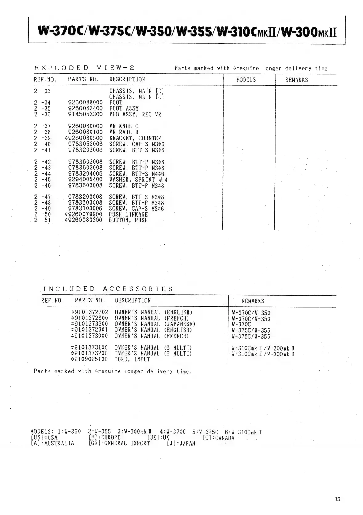 W-370C/W-375C/W-350/W-355/W-310Cu«0/W-300m«Il