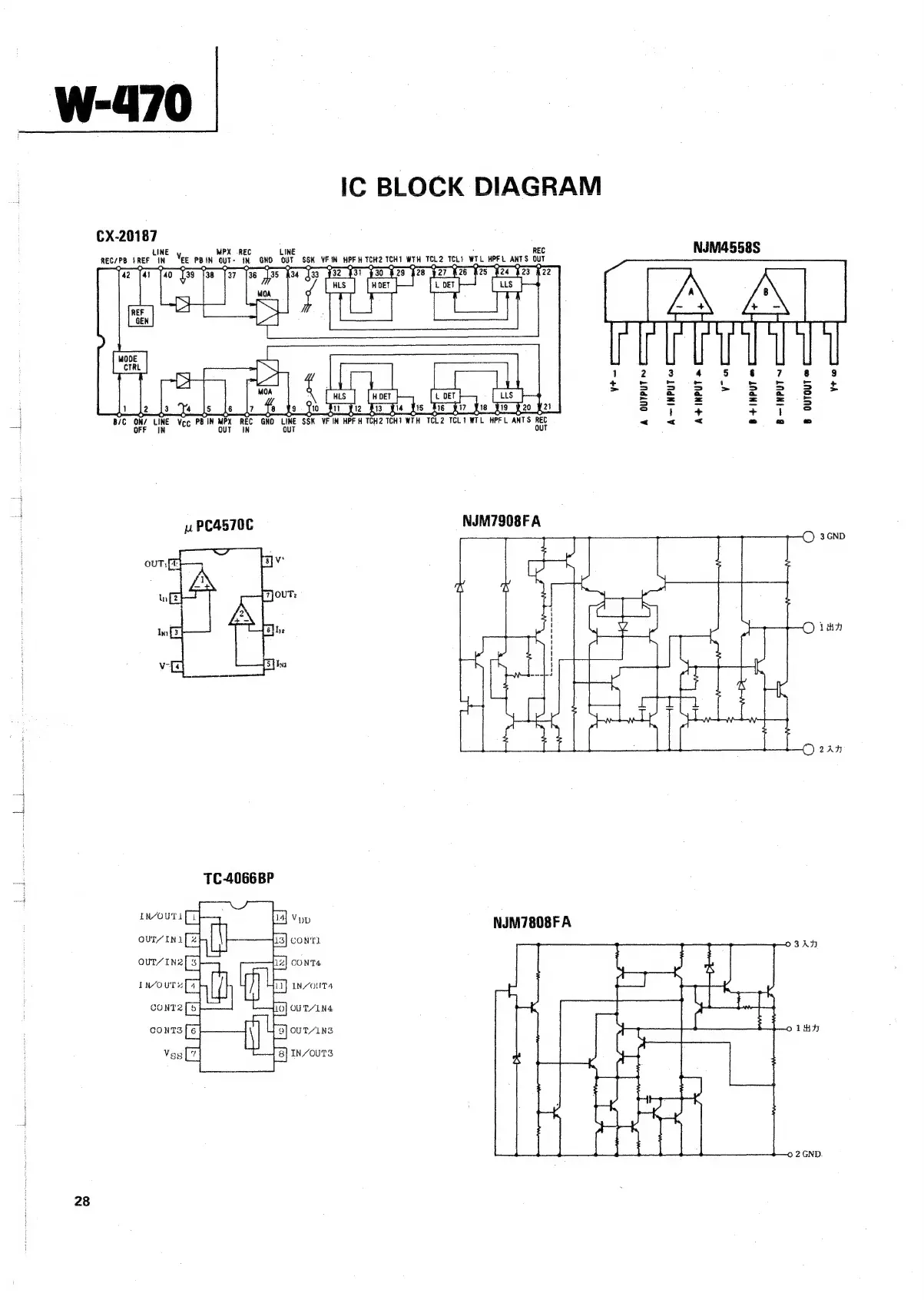 Teac W-470 - Integrated Circuit Block Diagrams; CX-20187 IC Diagram; NJM4558 S IC Diagram; μ PC4570 C IC Diagram