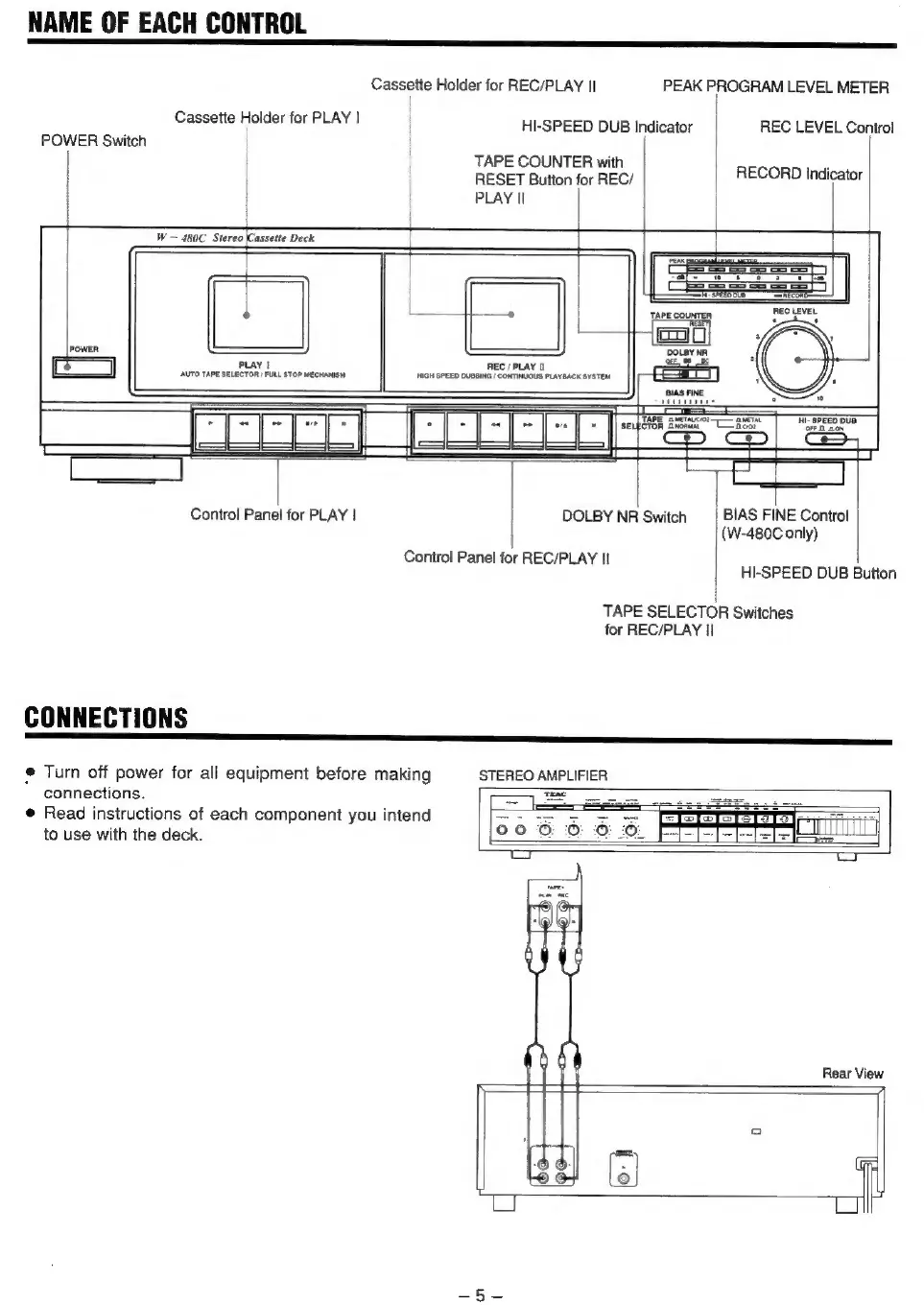 Teac W-480C - Name of each Control