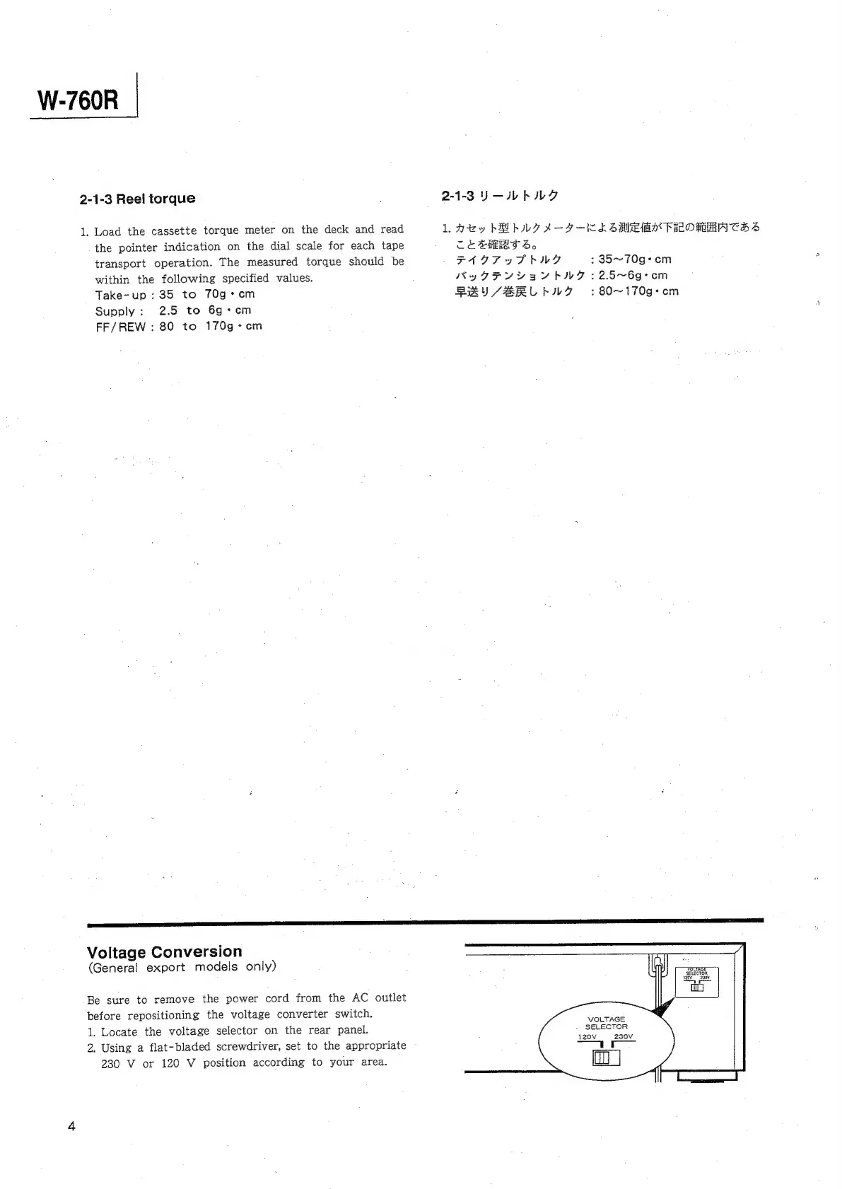 Teac W-760R - Reel Torque Adjustment; Voltage Conversion