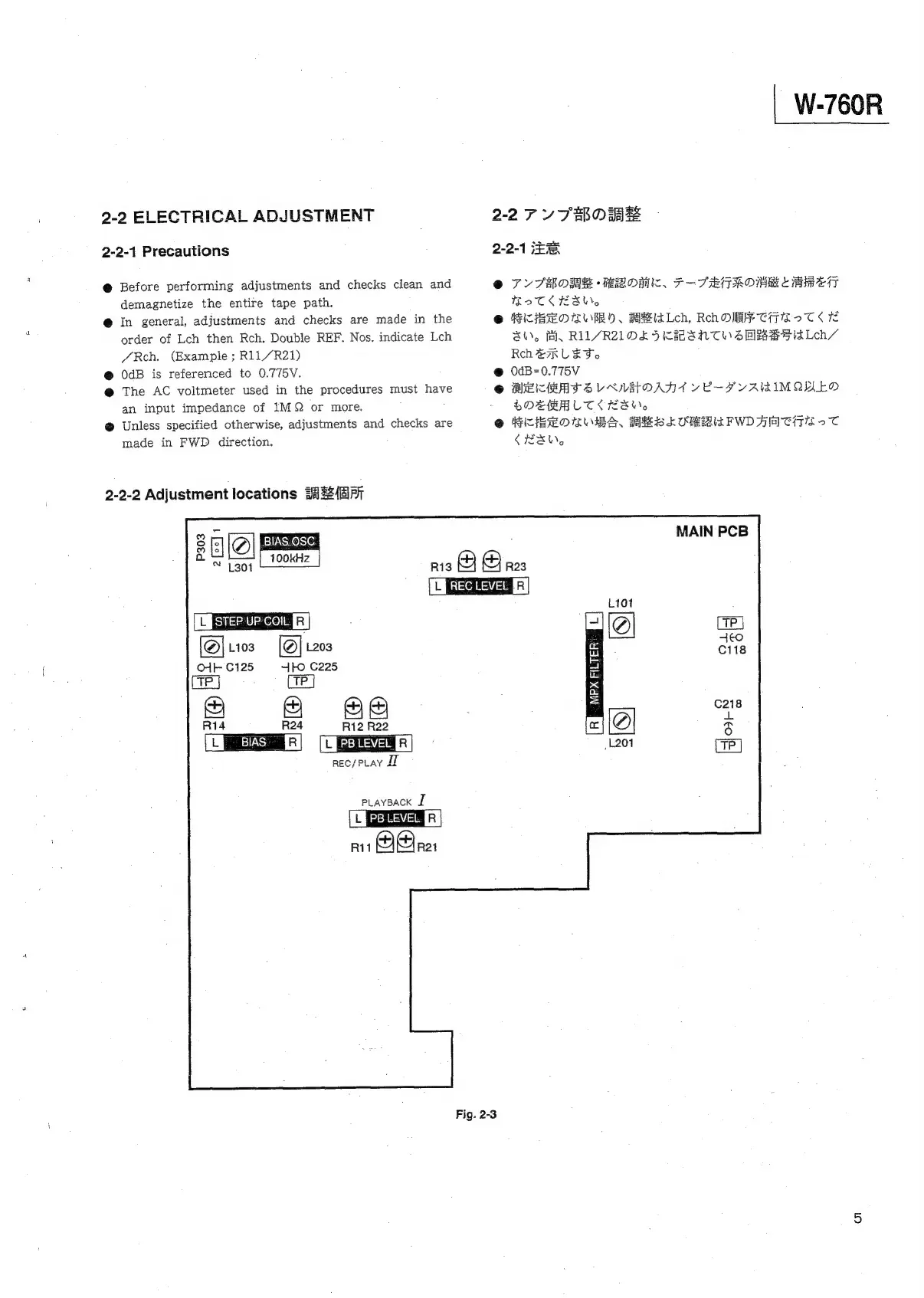 Teac W-760R - 2-2 Electrical Adjustment; Precautions for Electrical Adjustment; Adjustment Locations