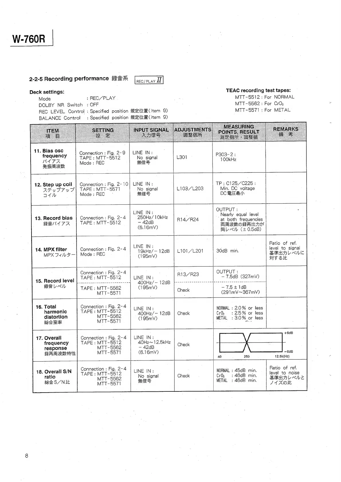 Teac W-760R - Recording Performance Checks