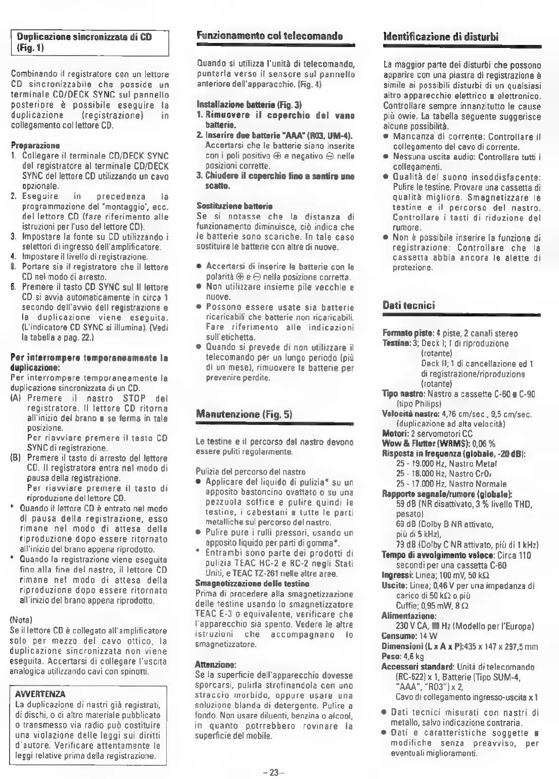 Teac W-780R - Manutenzione