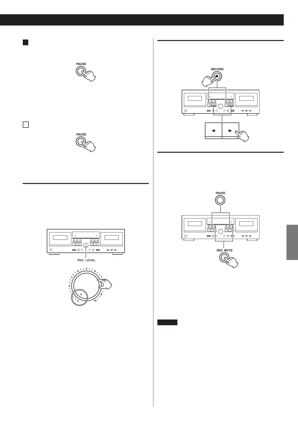 Si pulsa la tecla REC MUTE cuando la pletina está en el modo de
