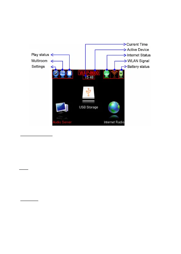 Hlavní nabídka zařízení WAP-8600 má dvě oblasti: