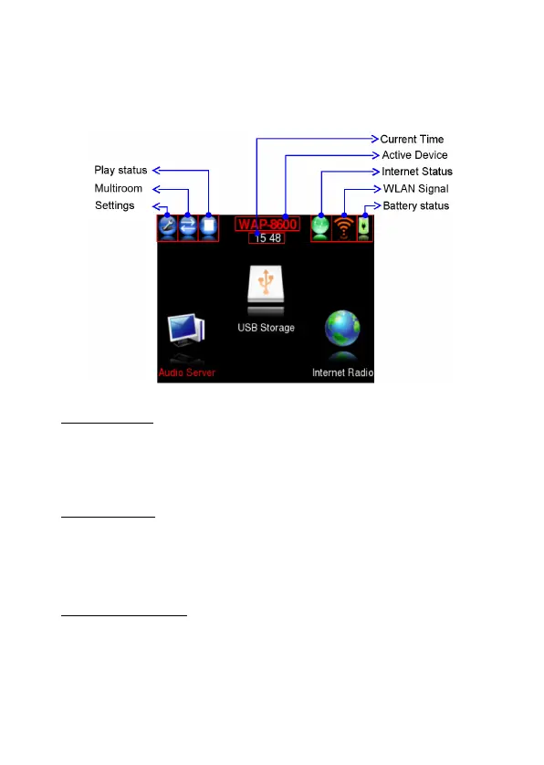 Das Hauptmenü des WAP-8600 zeigt zwei Anzeigebereiche:
