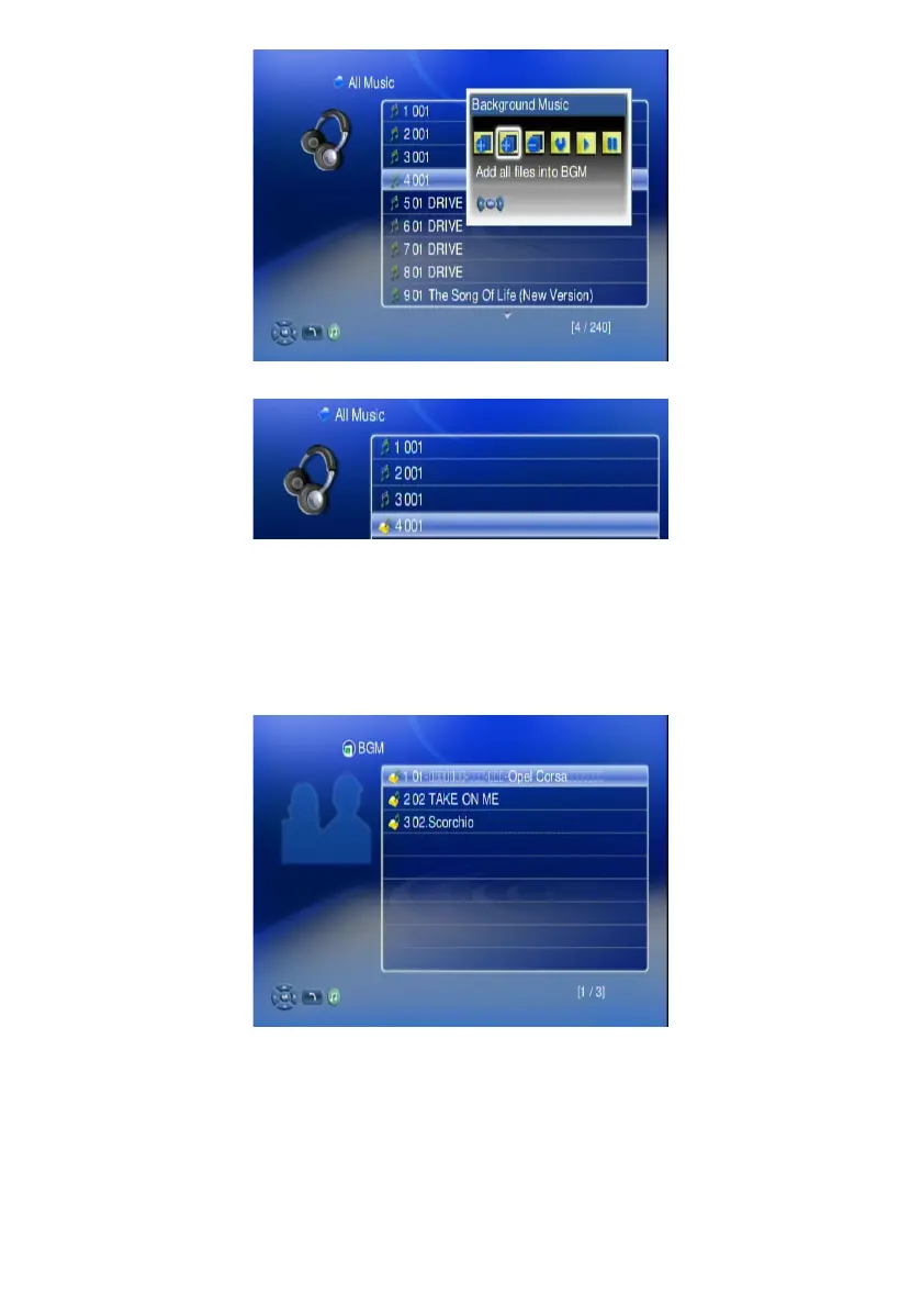 7. To check the selection for BGM, please select “BGM list” icon to view all