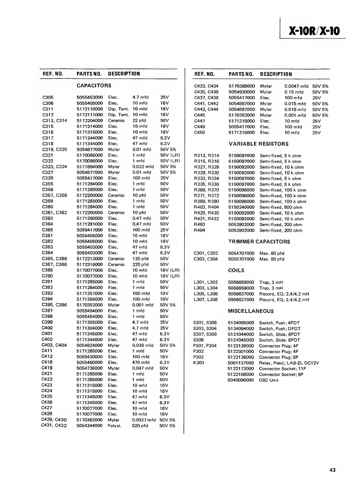 Teac X-10 - REC AND PLAY AMPL PCB ASSY (X-10); ICs; TRANSISTORS; DIODES