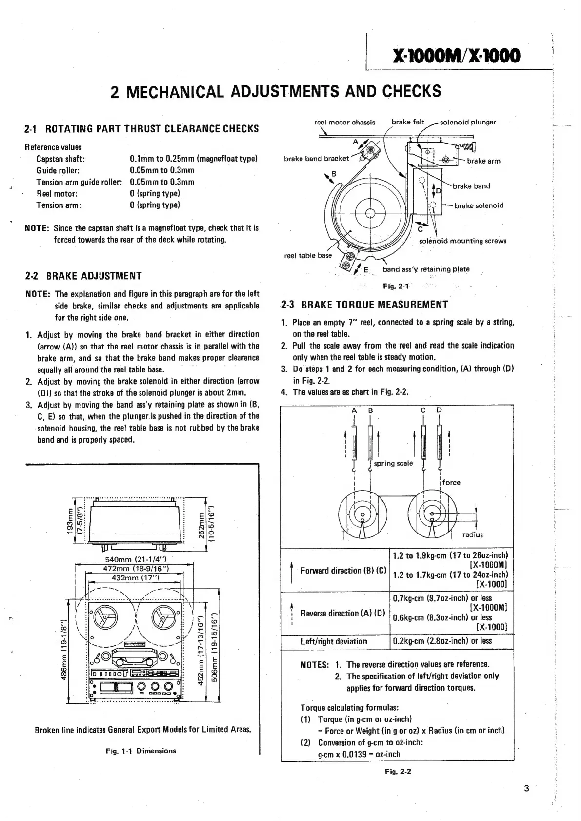 Teac X-1000M - Mechanical Adjustments and Checks; Rotating Part Thrust Clearance Checks; Brake Adjustment and Torque Measurement