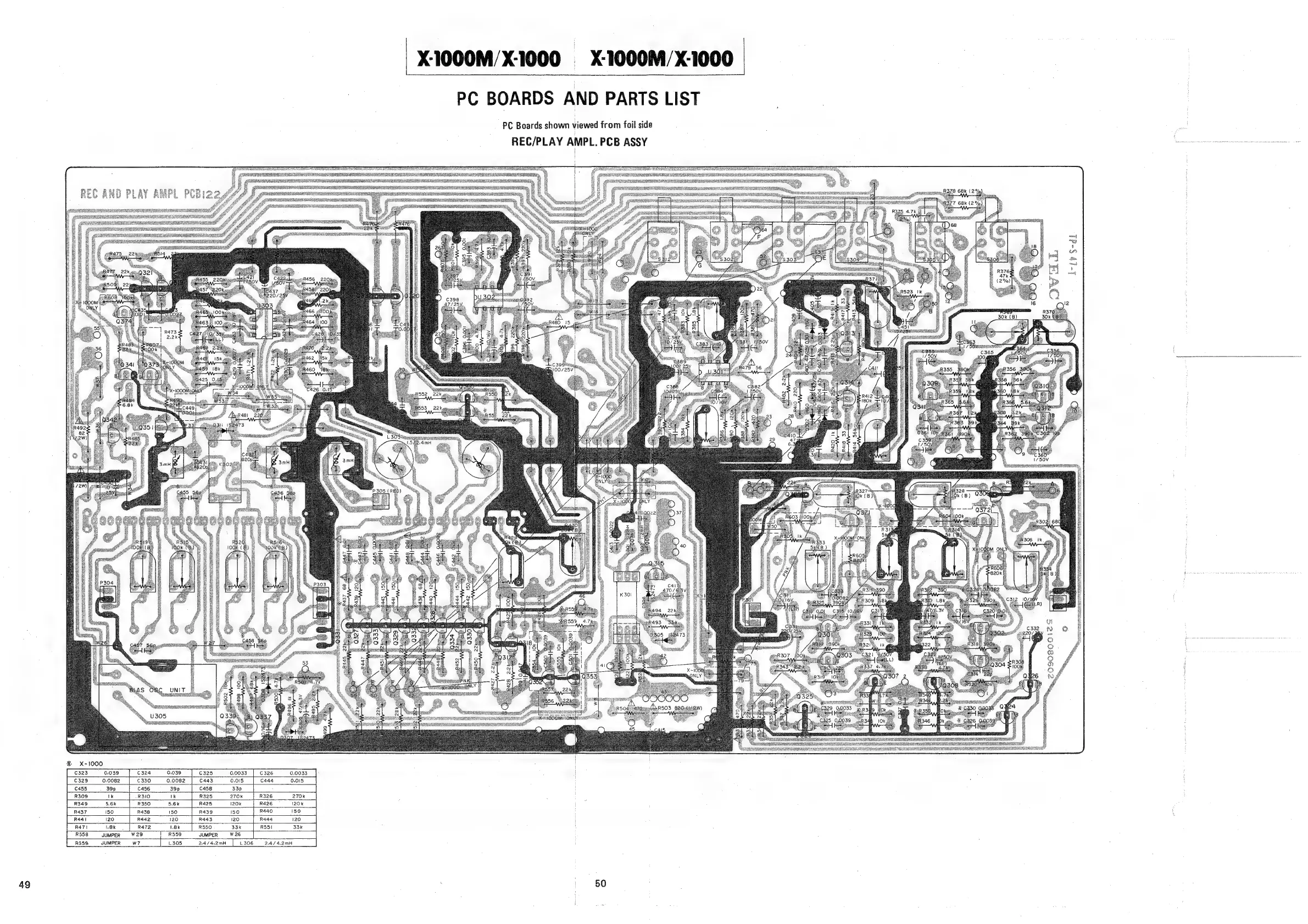 Teac X-1000M - PC Boards and Parts Lists; REC;PLAY AMP PCB ASSY Component List; VR PCB ASSY (POWER;SERVO) Component List; DBX SWITCH PCB ASSY Component List