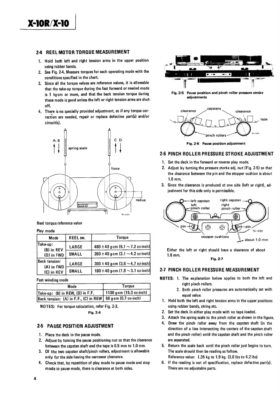 Teac X-10R - 2-4 Reel Motor Torque Measurement; 2-5 Pause Position Adjustment; 2-6 Pinch Roller Pressure Stroke Adjustment; 2-7 Pinch Roller Pressure Measurement