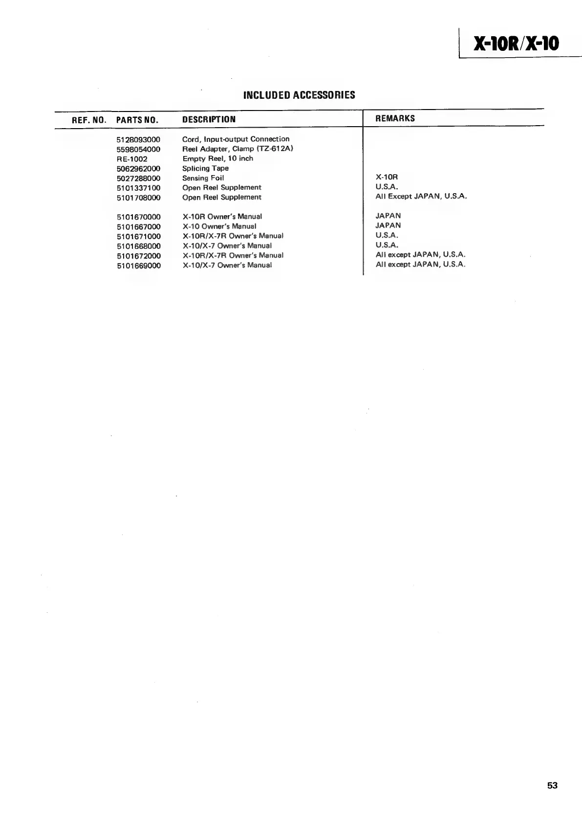 Teac X-10R - Included Accessories