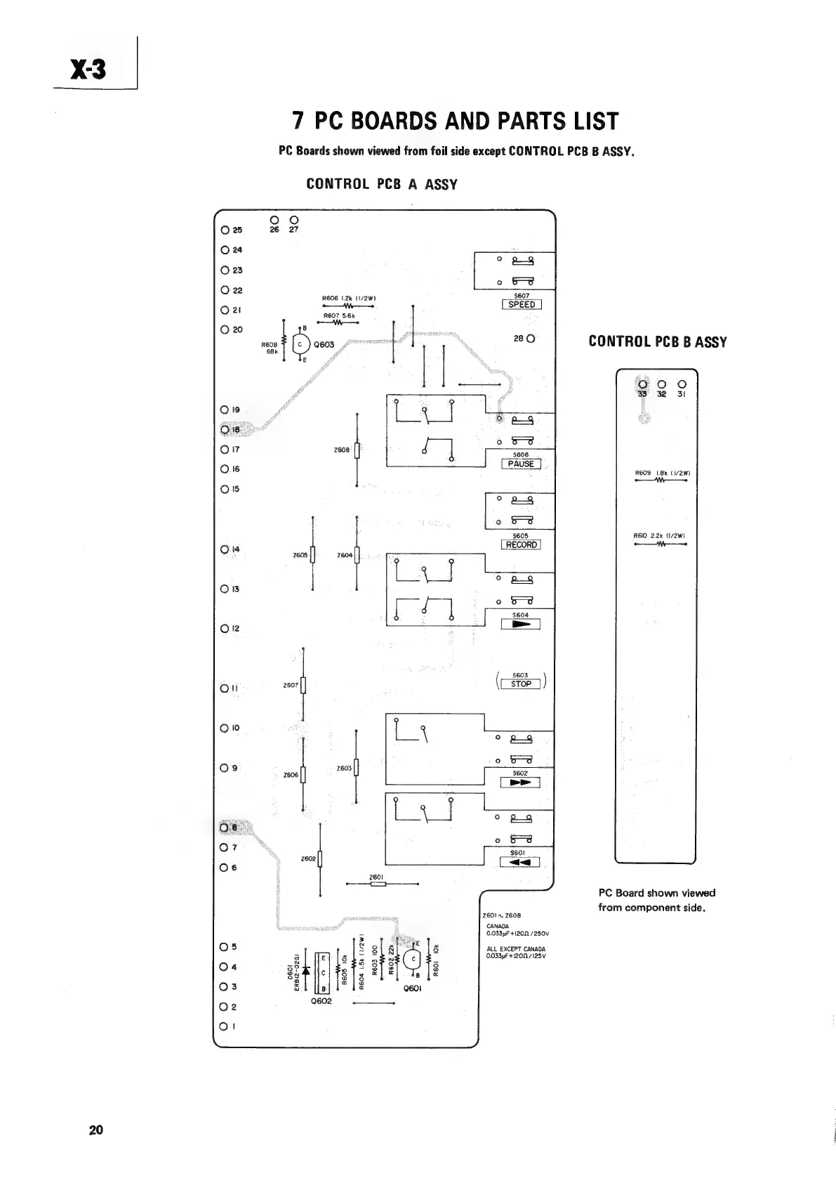 Teac X-3 - 7 PC BOARDS AND PARTS LIST; CONTROL PCB A ASSY; CONTROL PCB B ASSY