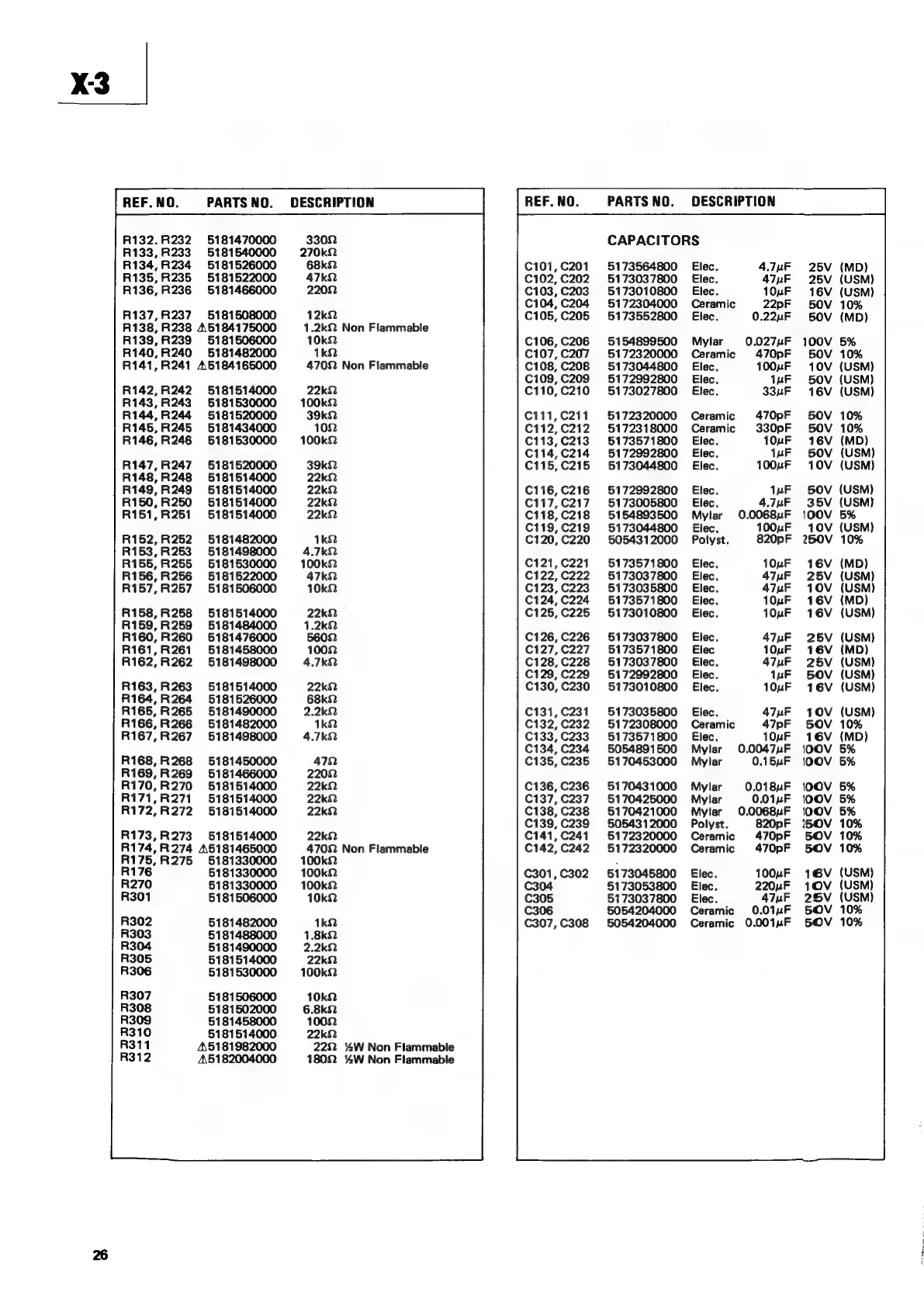 Teac X-3 - RESISTORS; CAPACITORS