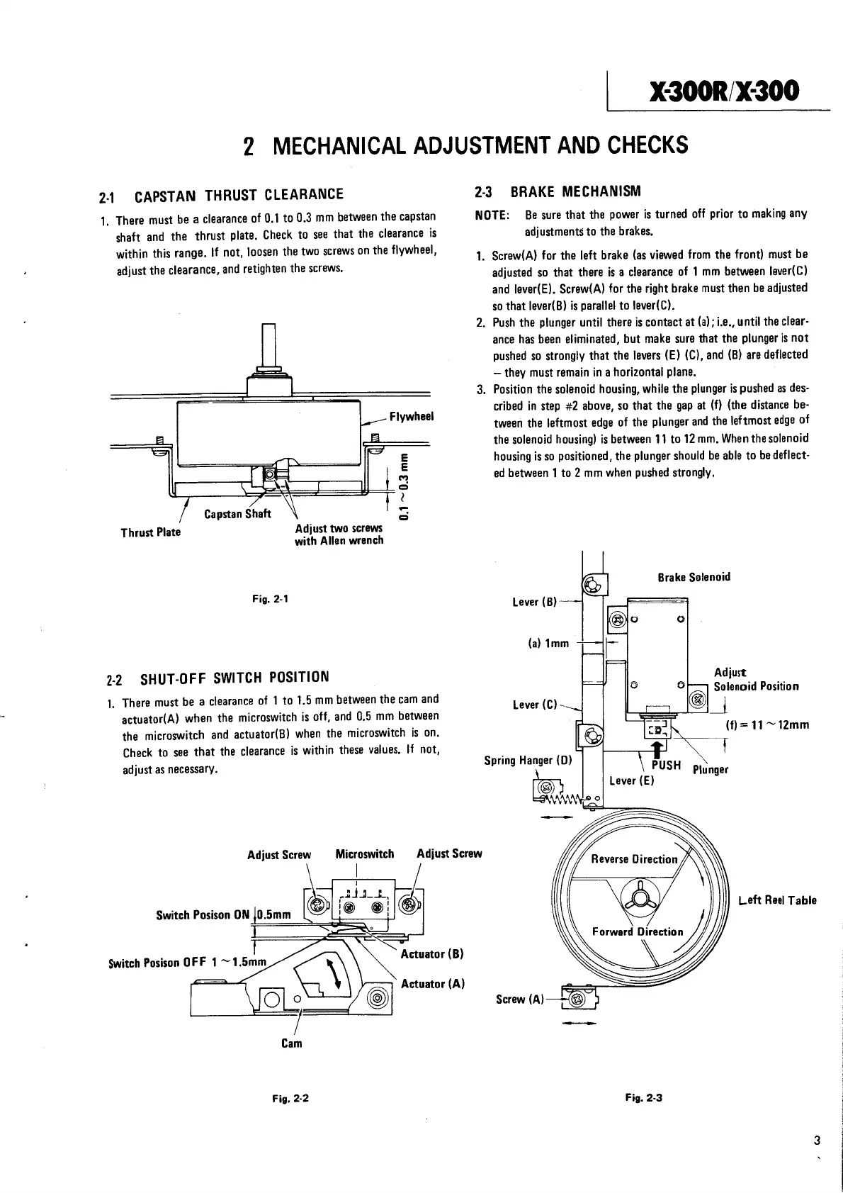 Teac X-300 - 2 Mechanical Adjustment and Checks; 2-1 Capstan Thrust Clearance; 2-3 Brake Mechanism
