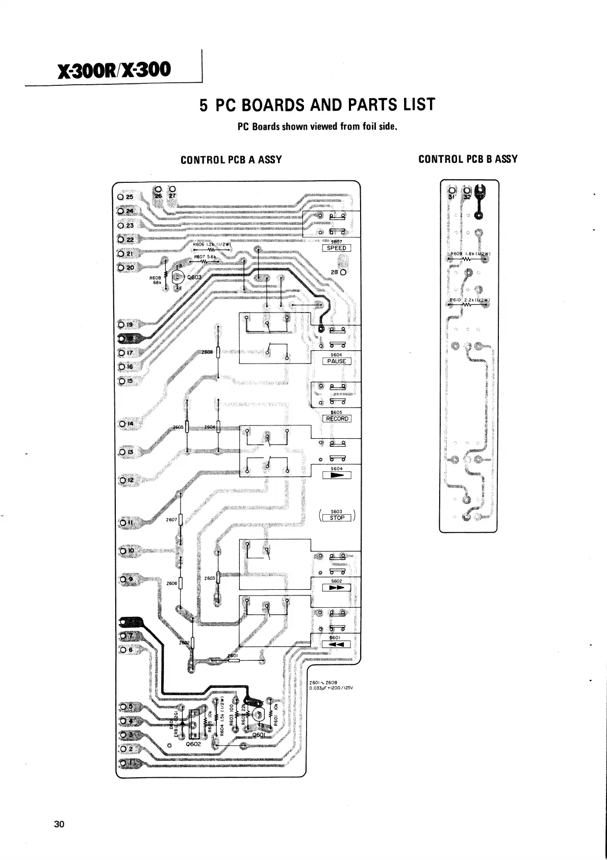 Teac X-300 - 5 PC Boards and Parts List; Control PCB A Assy; Control PCB B Assy