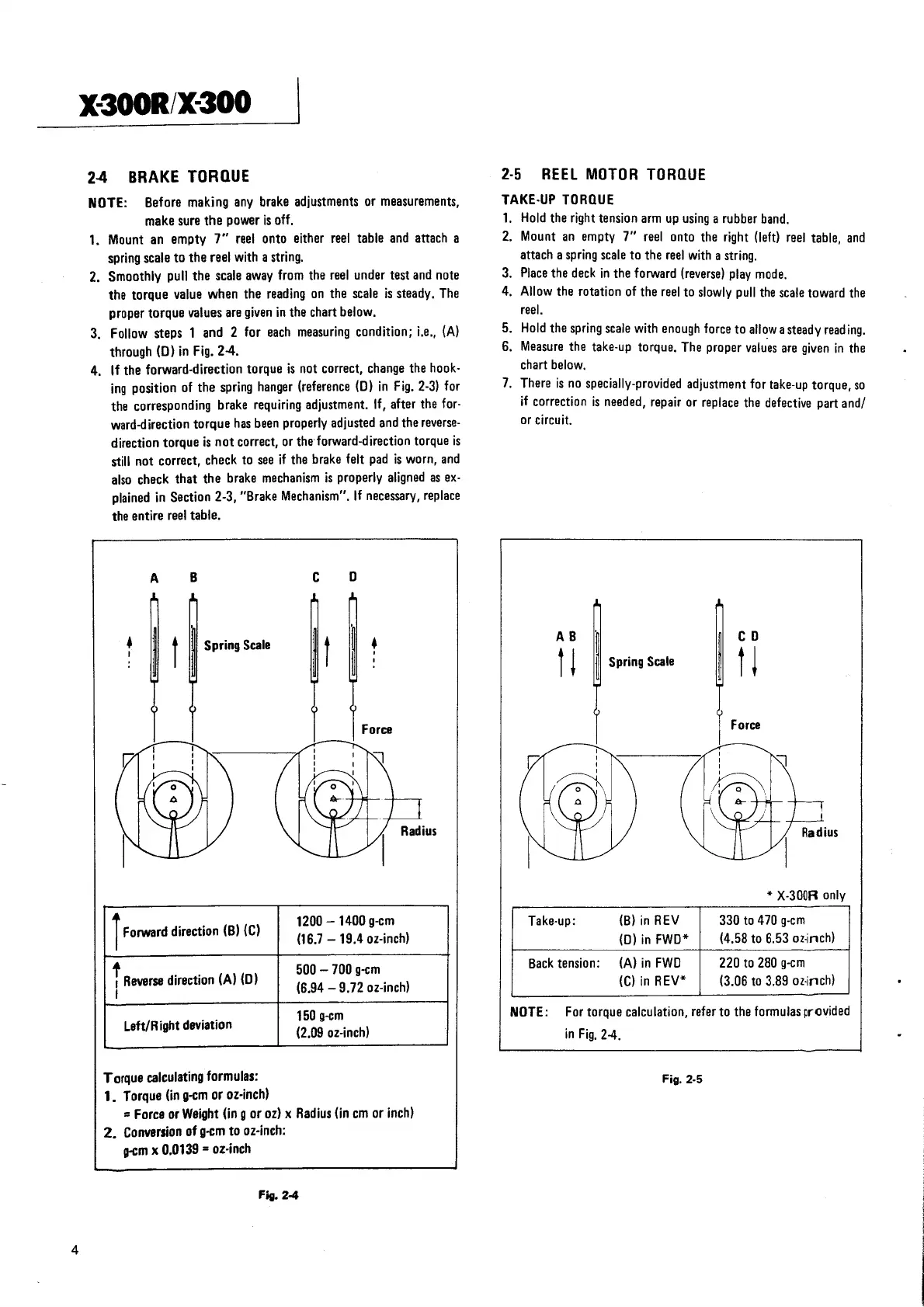 Teac X-300R - Brake Torque; Reel Motor Torque; Take-Up Torque; Back Tension