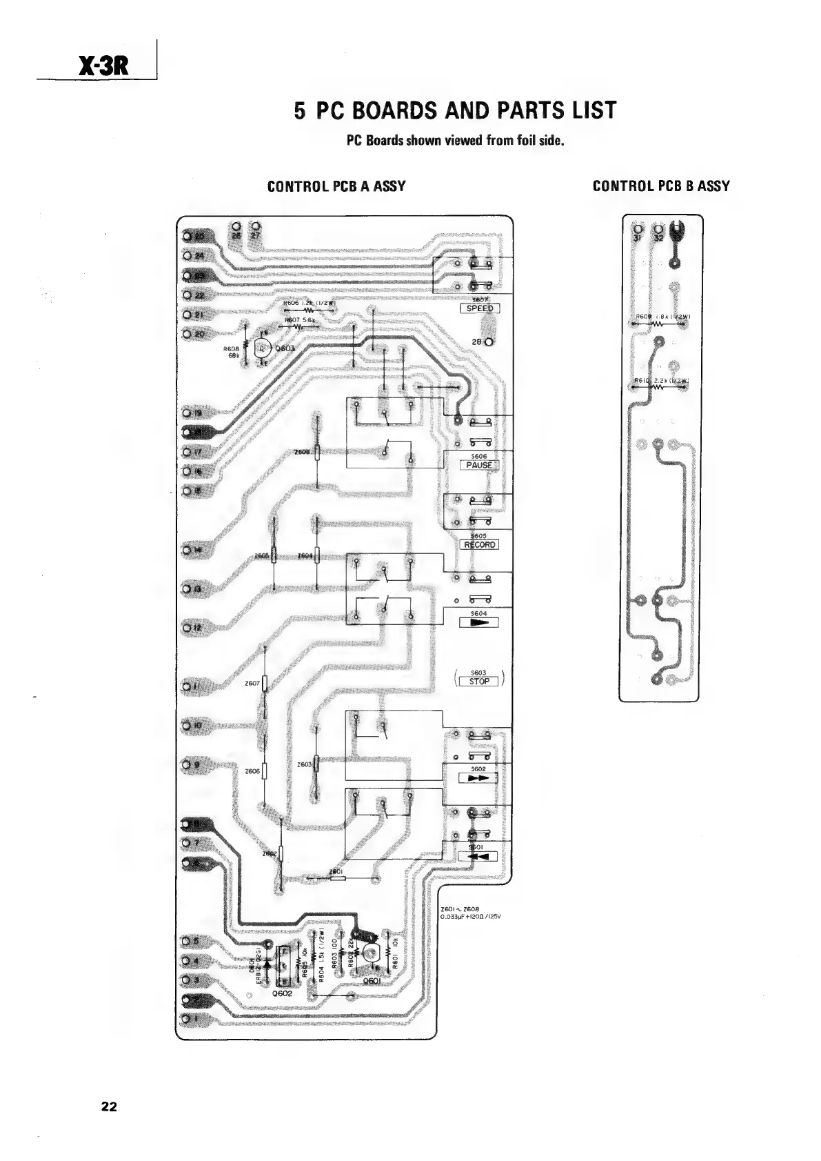 Teac X-3R - PC BOARDS AND PARTS LIST; CONTROL PCB A ASSY COMPONENTS; CONTROL PCB B ASSY COMPONENTS
