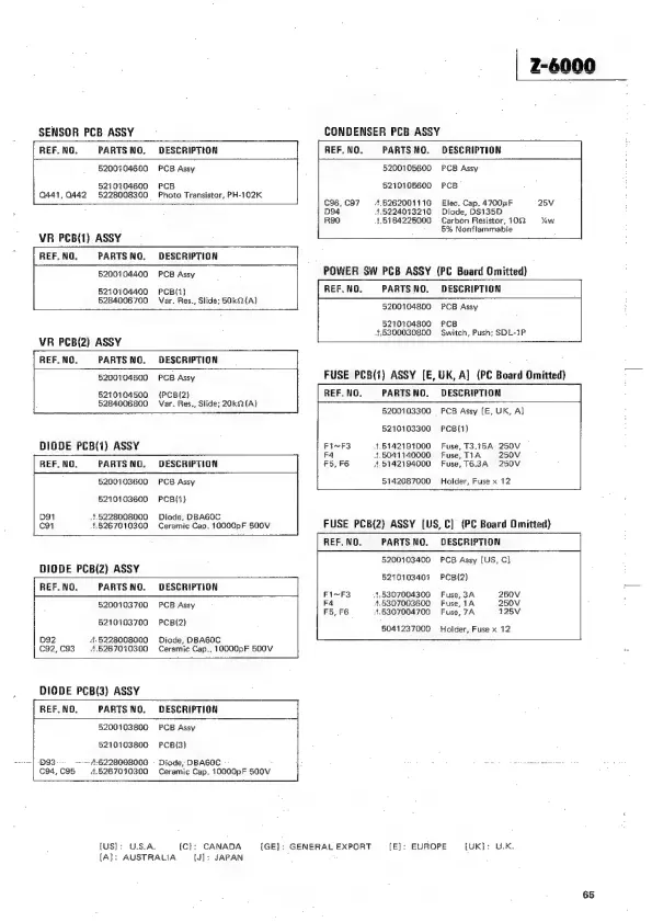 Teac Z-6000 - POWER SW PCB ASSY (PC Board Omitted); FUSE PCB(1) ASSY [E, UK, A] (PC Board Omitted); FUSE PCB(2) ASSY [US, C] (PC Board Omitted)