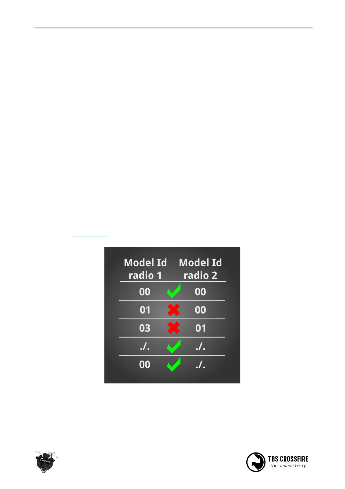 Multi bind and model match does not work together, when the model id is not the same in both radios:
