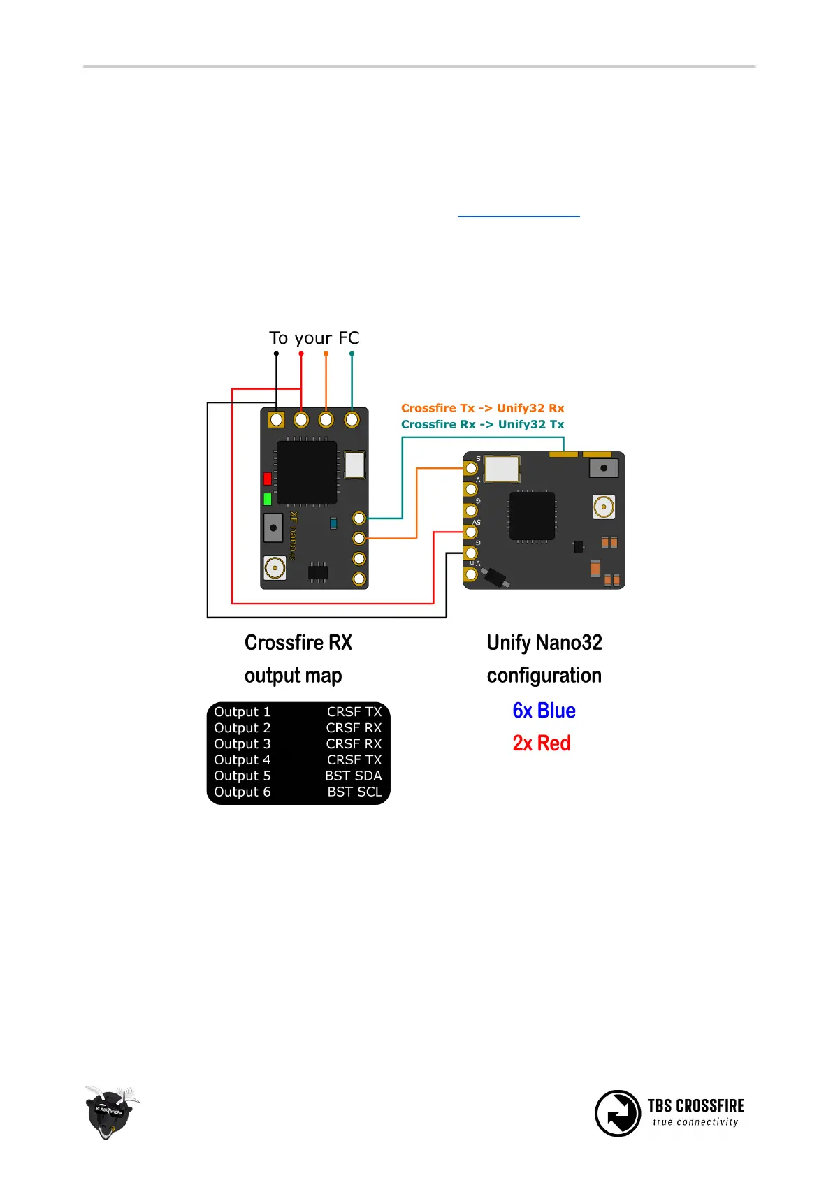 Connect them (Crossfire Tx to VTx Rx, Crossfire Rx to Unify Tx)
