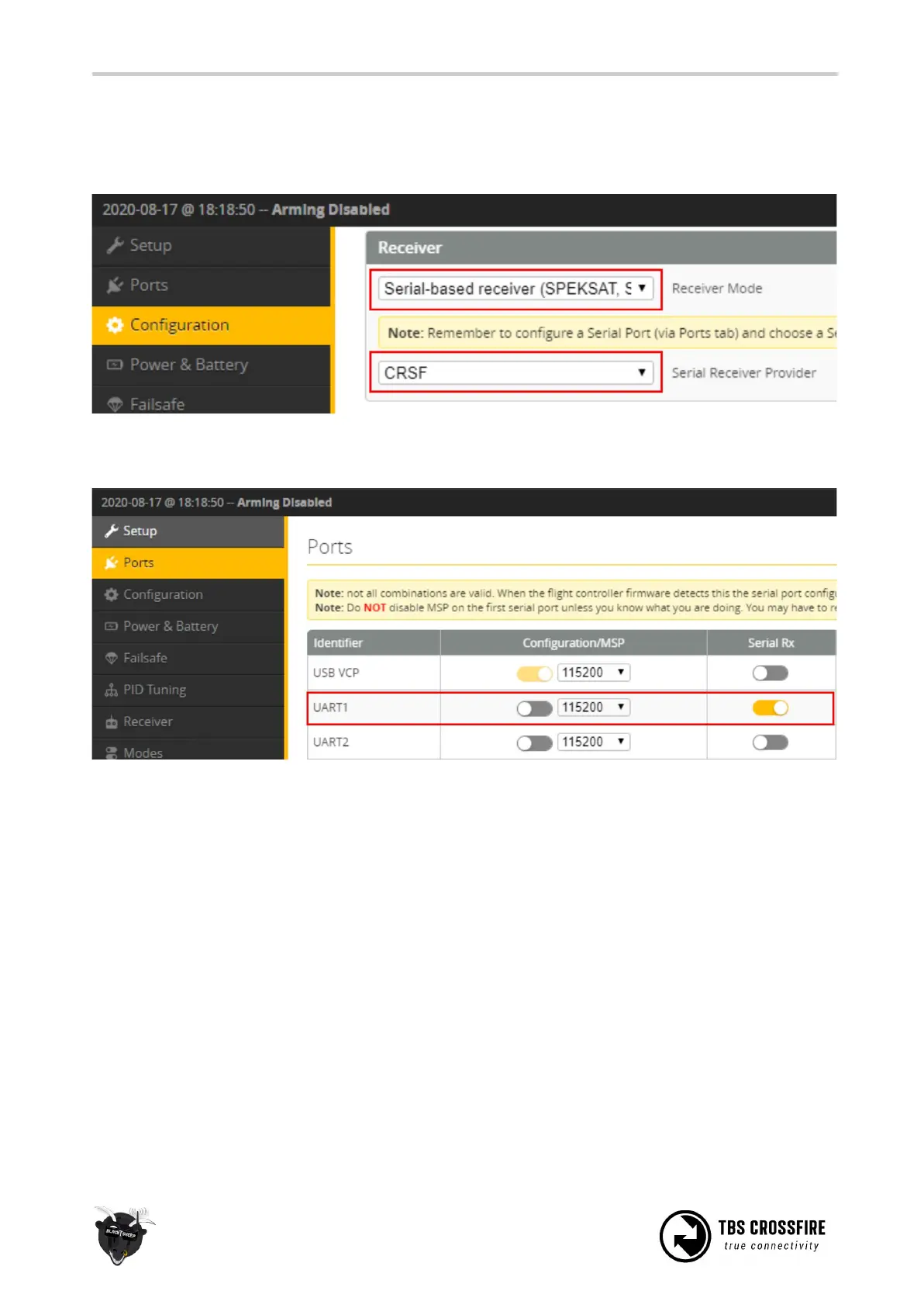 CRSF with BetaFlight and similar firmwares