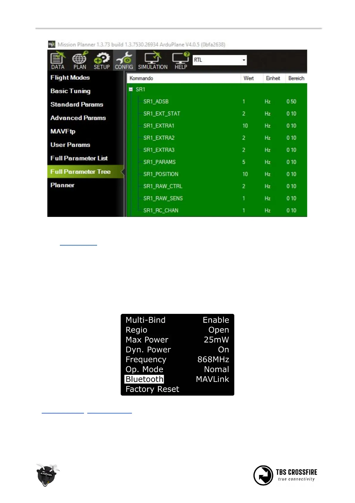 As soon as the receiver receives valid MAVLink packages, the Bluetooth module switches to MAVLink as