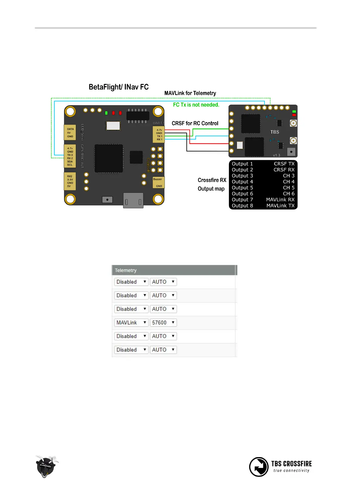 For the WiFi telemetry, you need to wire up your FC with a extra MAVLink connection, as the MAVLink