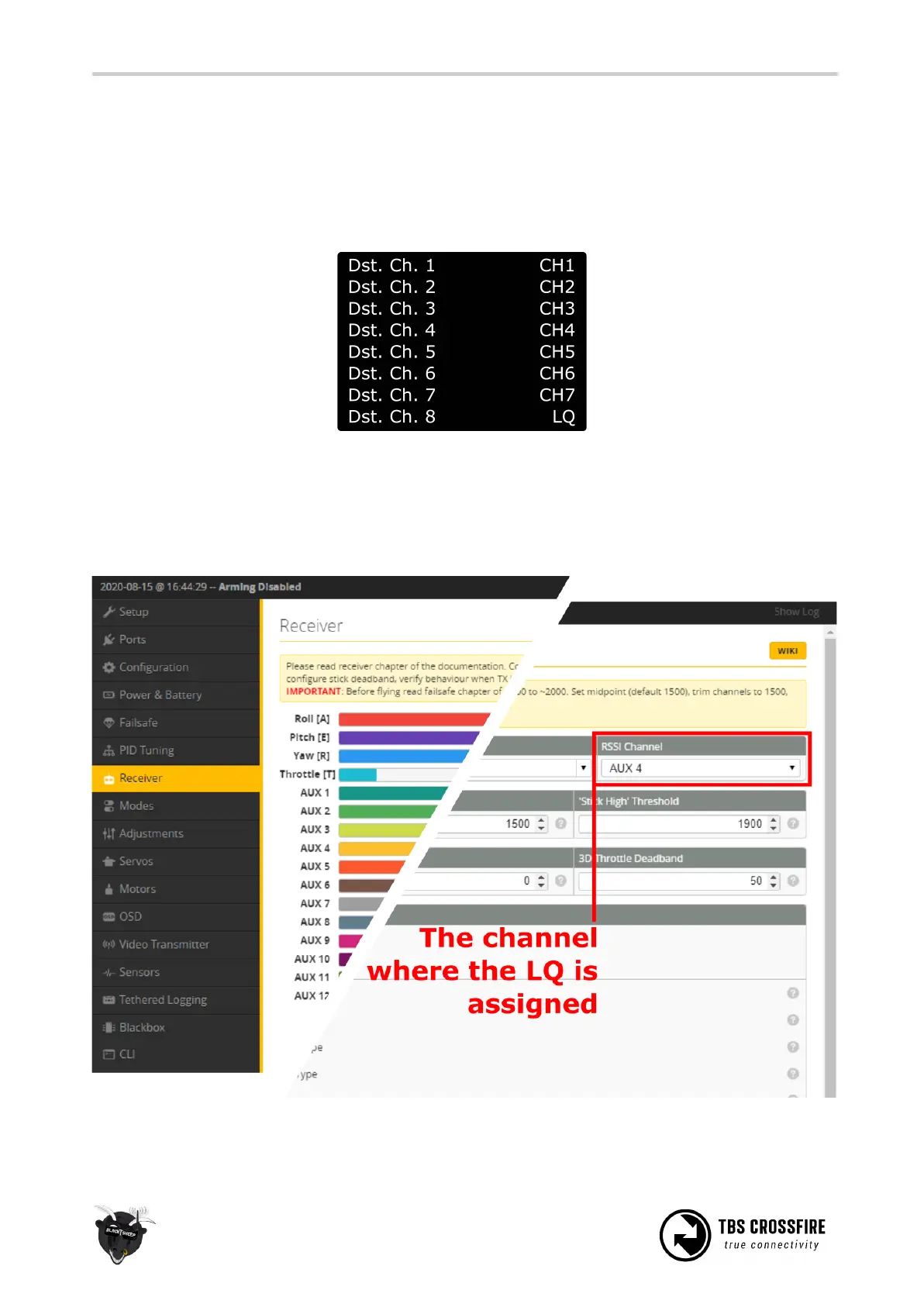 In BetaFlight, set the assigned channel as