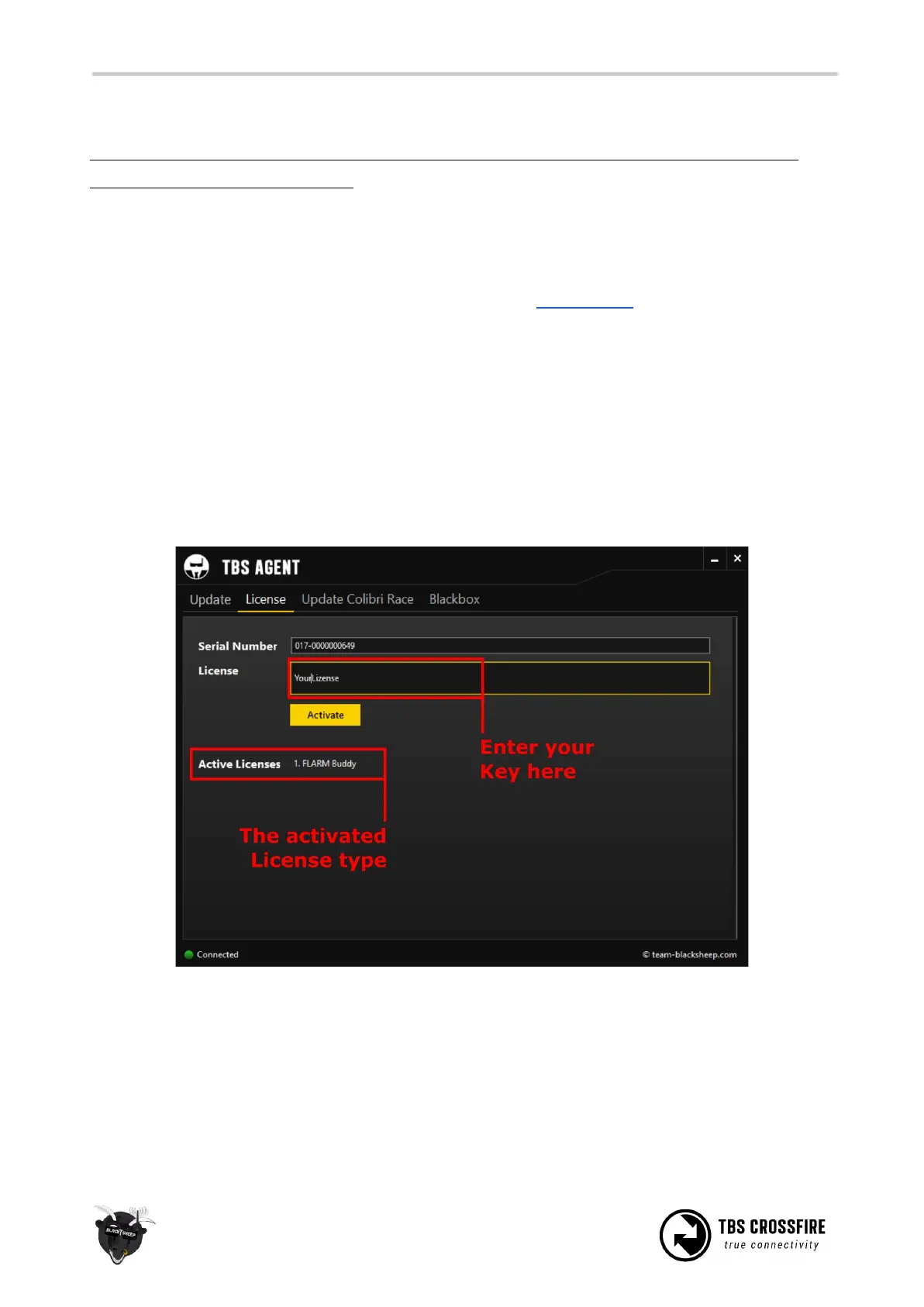 ● Enter the license in the desired field and hit enter