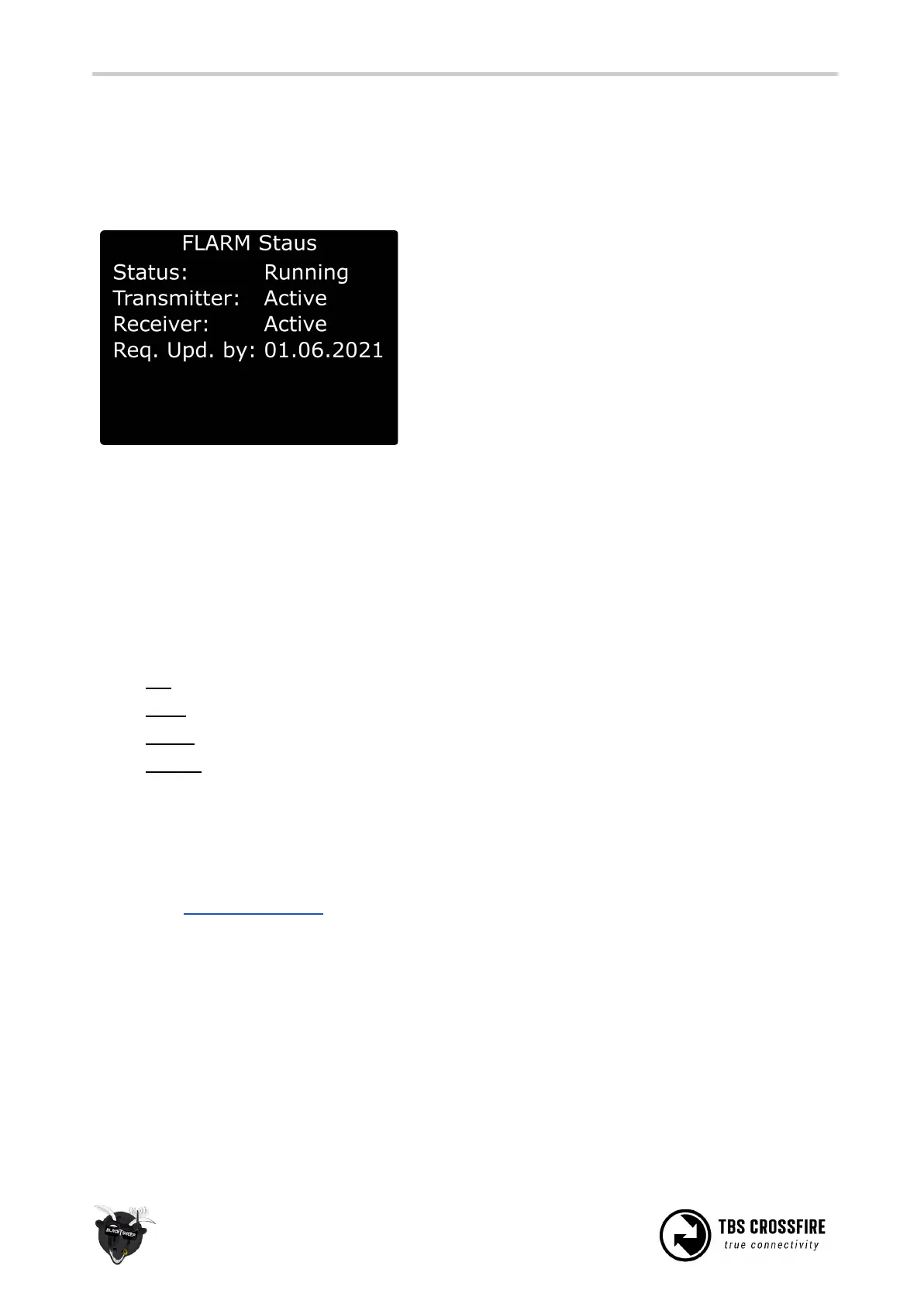 If you own a Standard or Lite Tx, you can see the actual status of your FLARM setup in one of the main