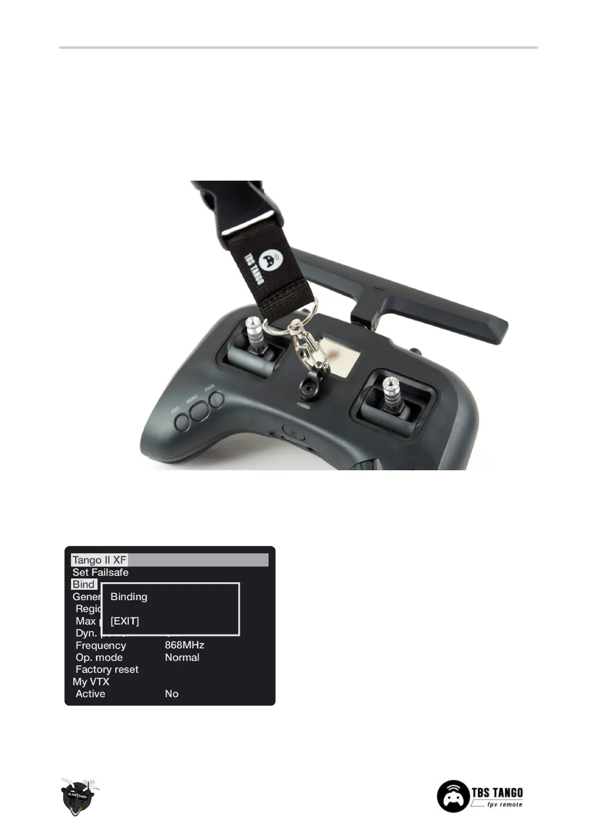 choice. We recommend the ETHIX neck strap, which is available from TBS or your favorite FPV dealer.
