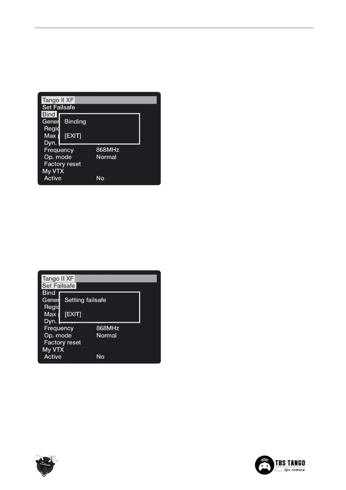 Menu, select TANGO II XF