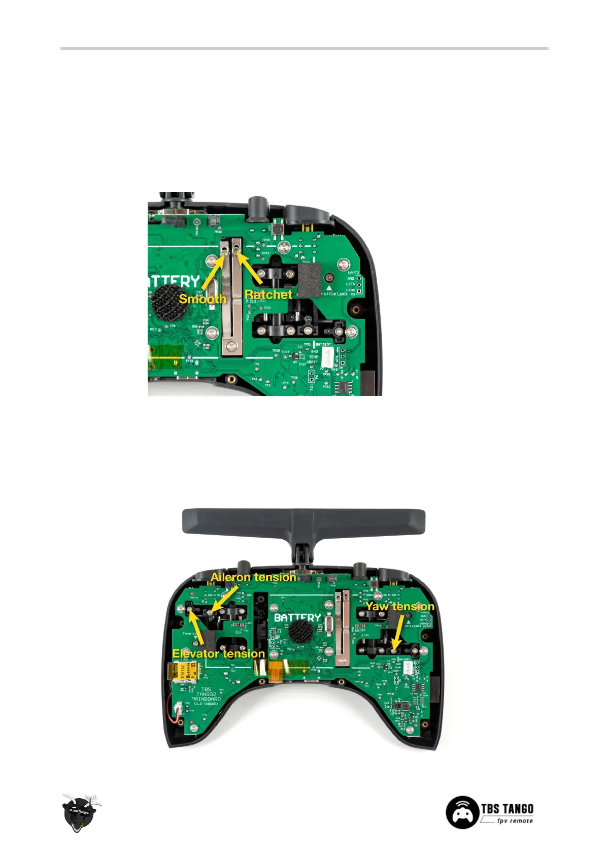 If the sticks feel too rigid or too soft, the tension of the springs can be changed by adjusting the tensions