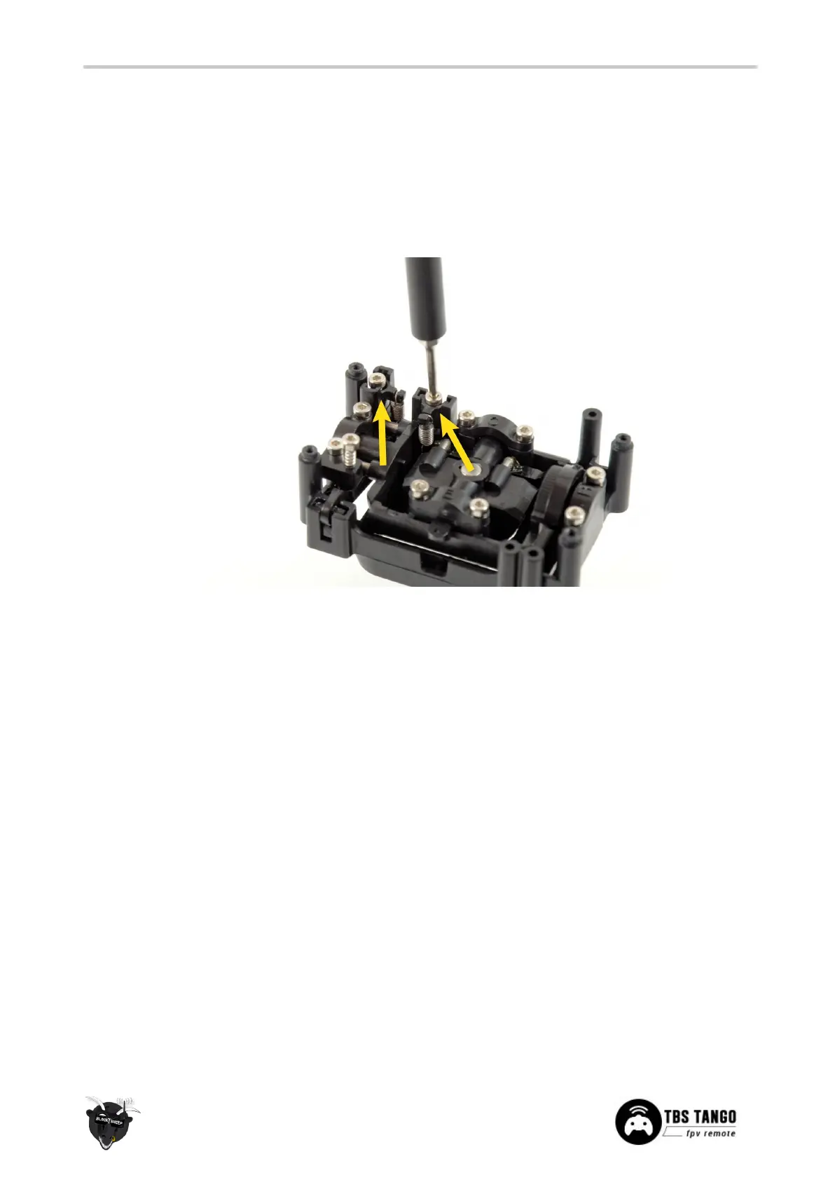 be performed without removing the gimbals from the radio, but it is recommended to disassemble the